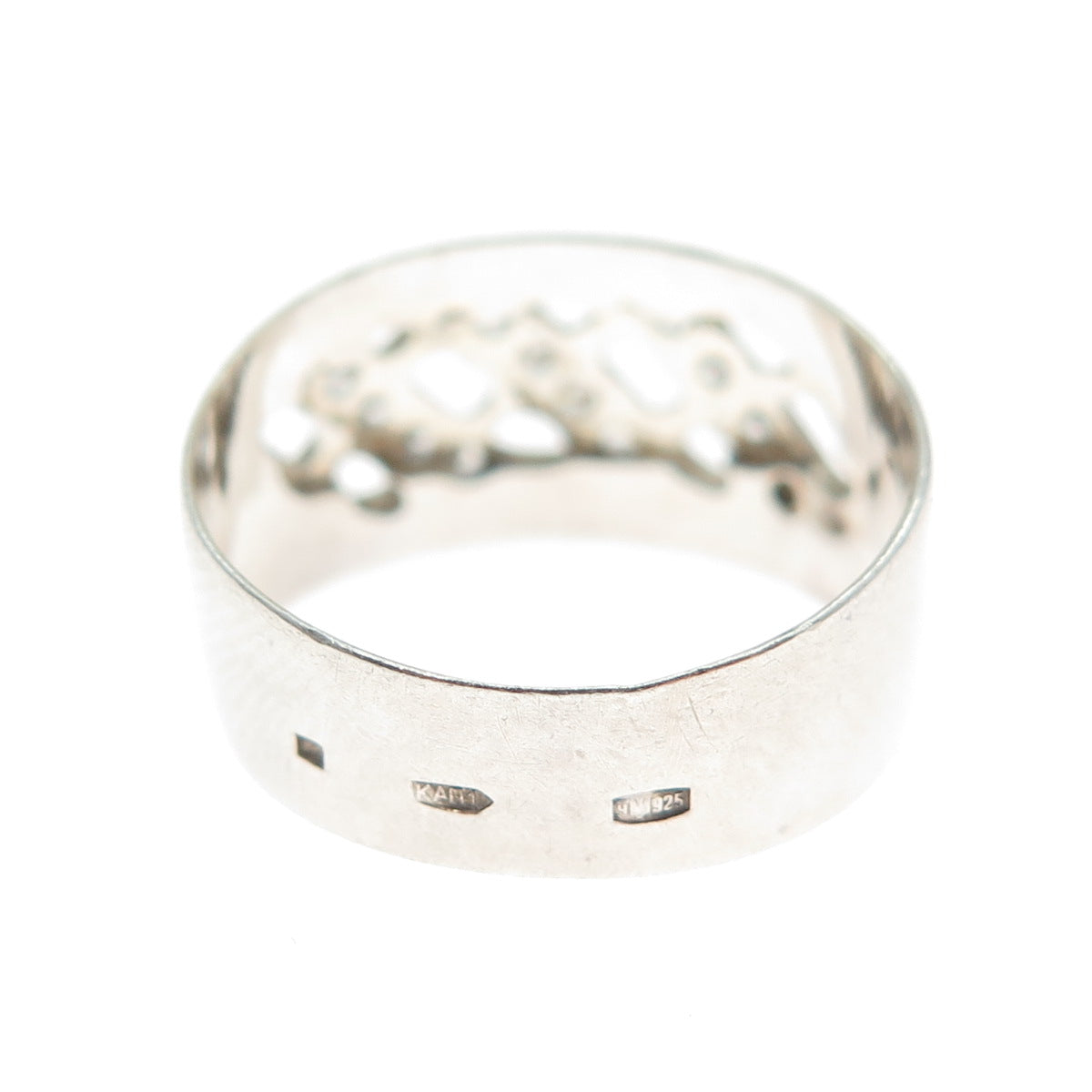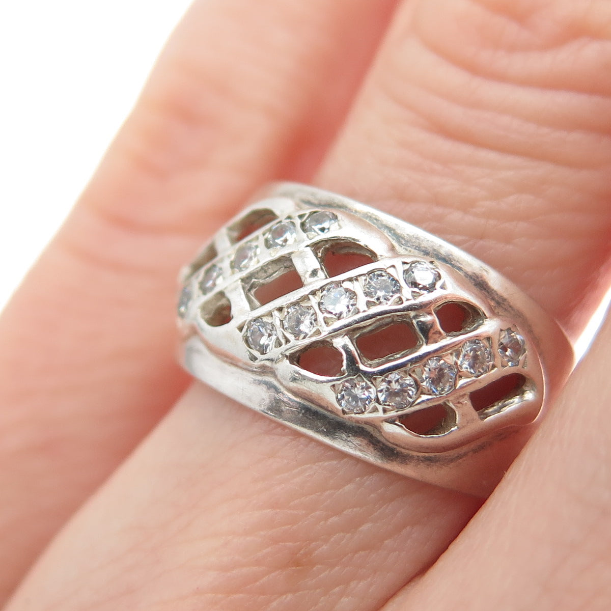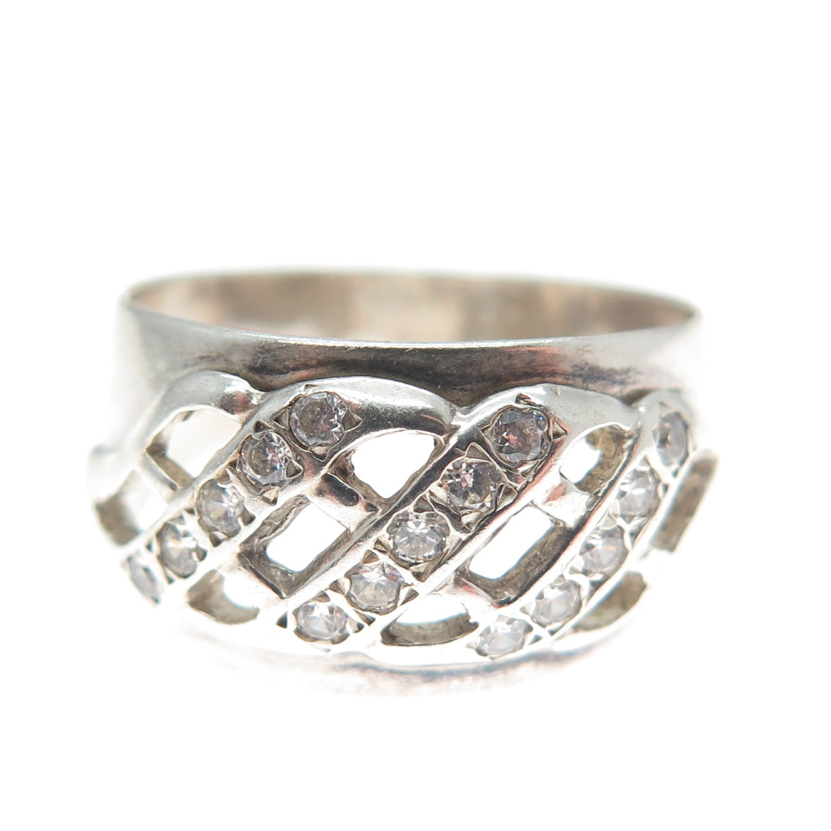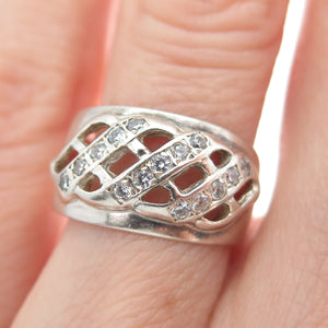 925 Sterling Silver Vintage European Round-Cut C Z Wavy Ring Size 6