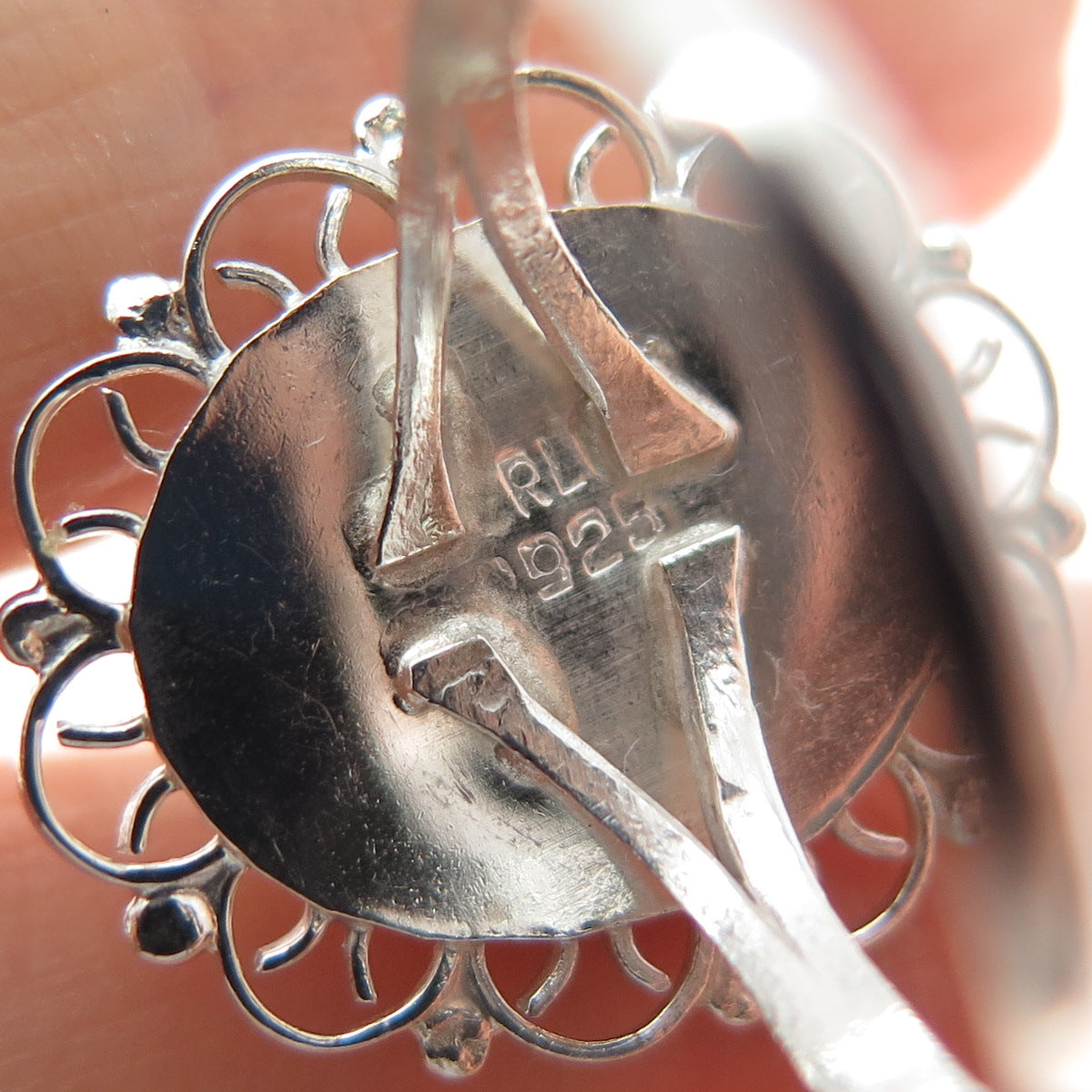 925 Sterling Silver Vintage Faux Turquoise Filigree Flower Ring Size 8