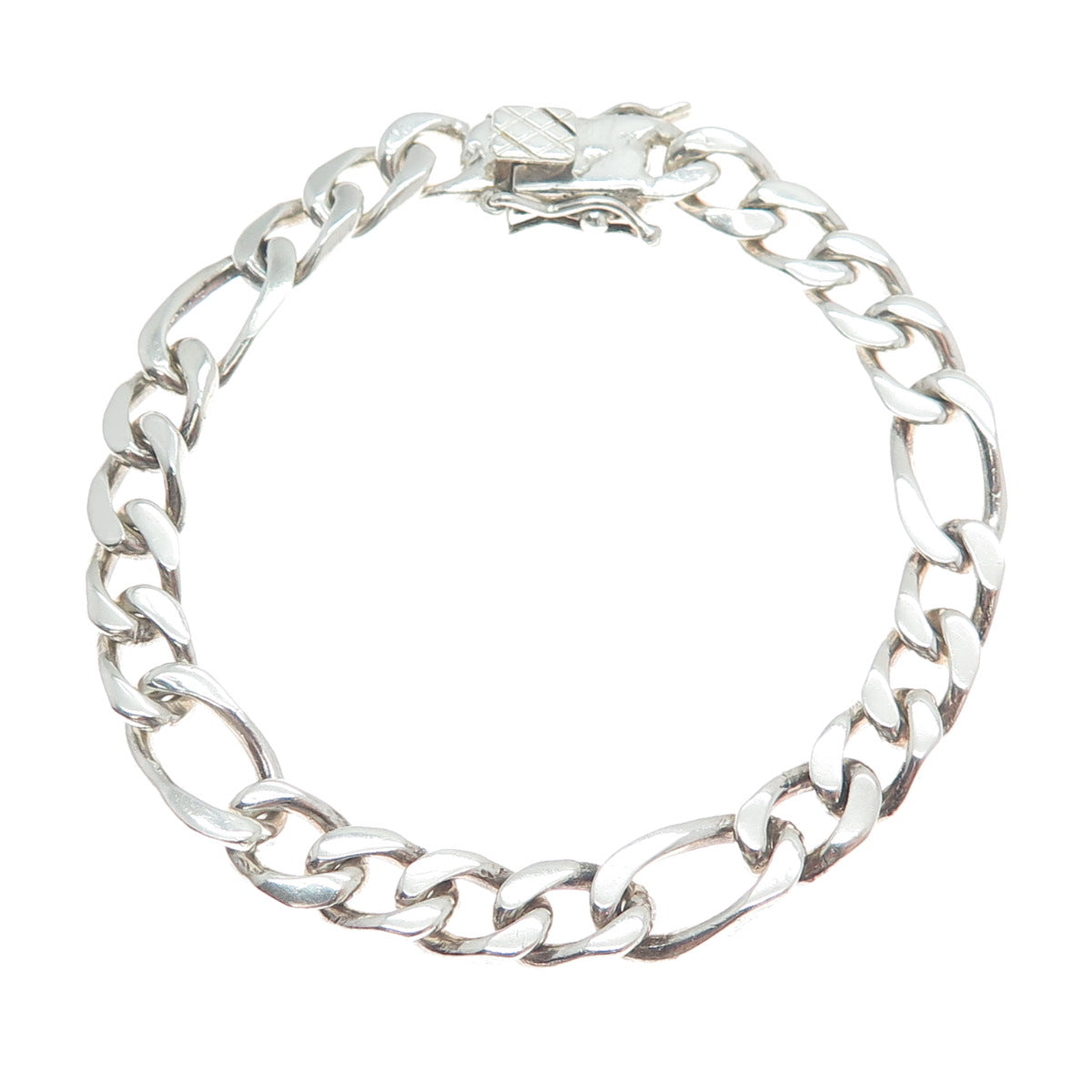 925 Sterling Silver Vintage Figaro Link Bracelet 7.25"