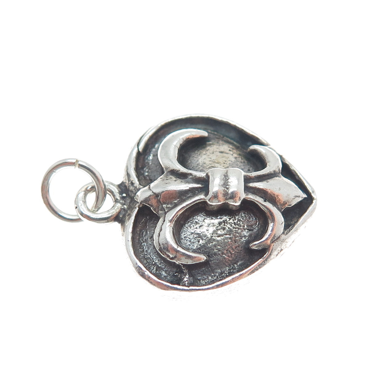 925 Sterling Silver Vintage Fleur de Lis Heart Oxidized Charm Pendant