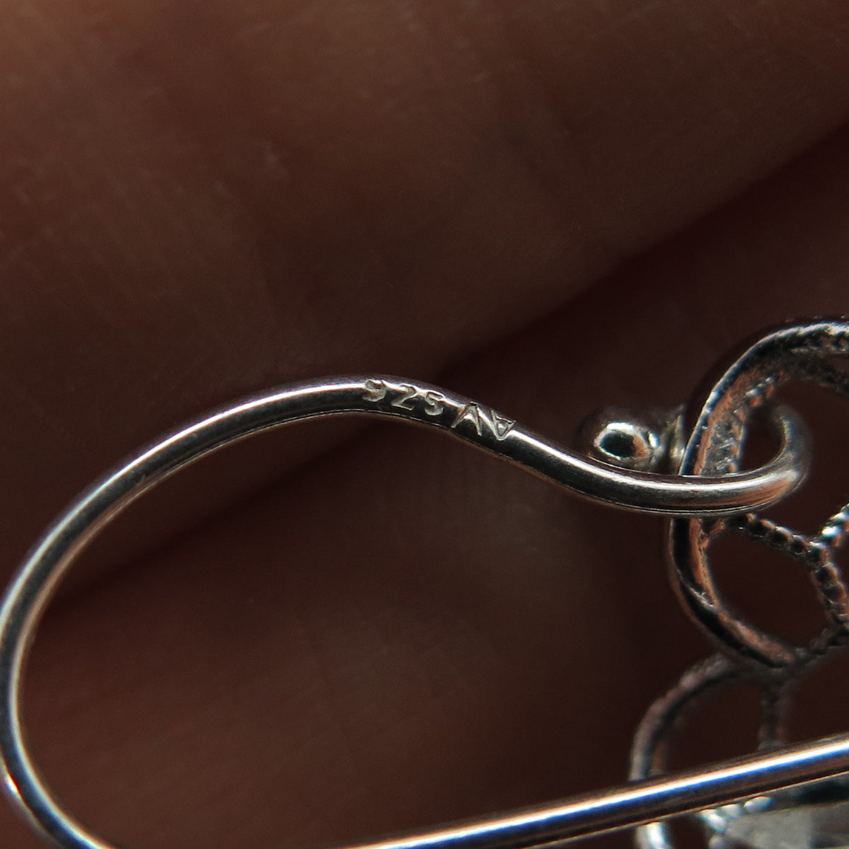 925 Sterling Silver Vintage Flower Filigree Dangle Earrings