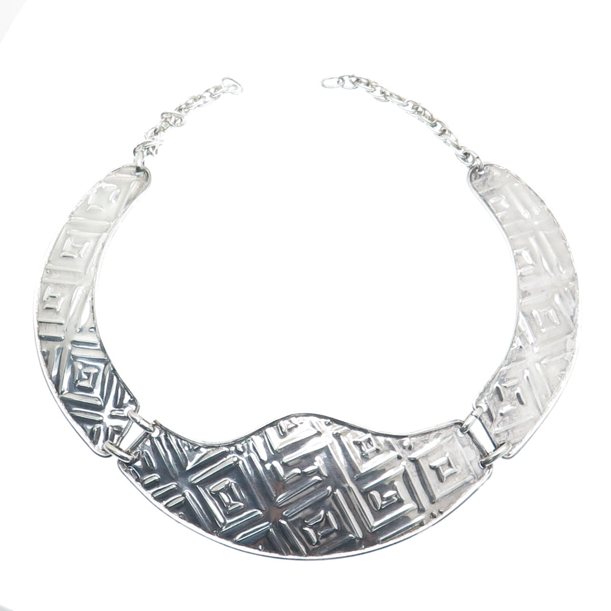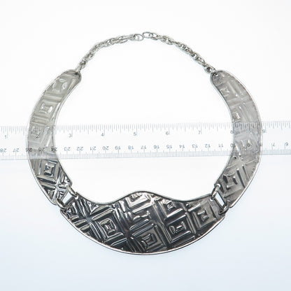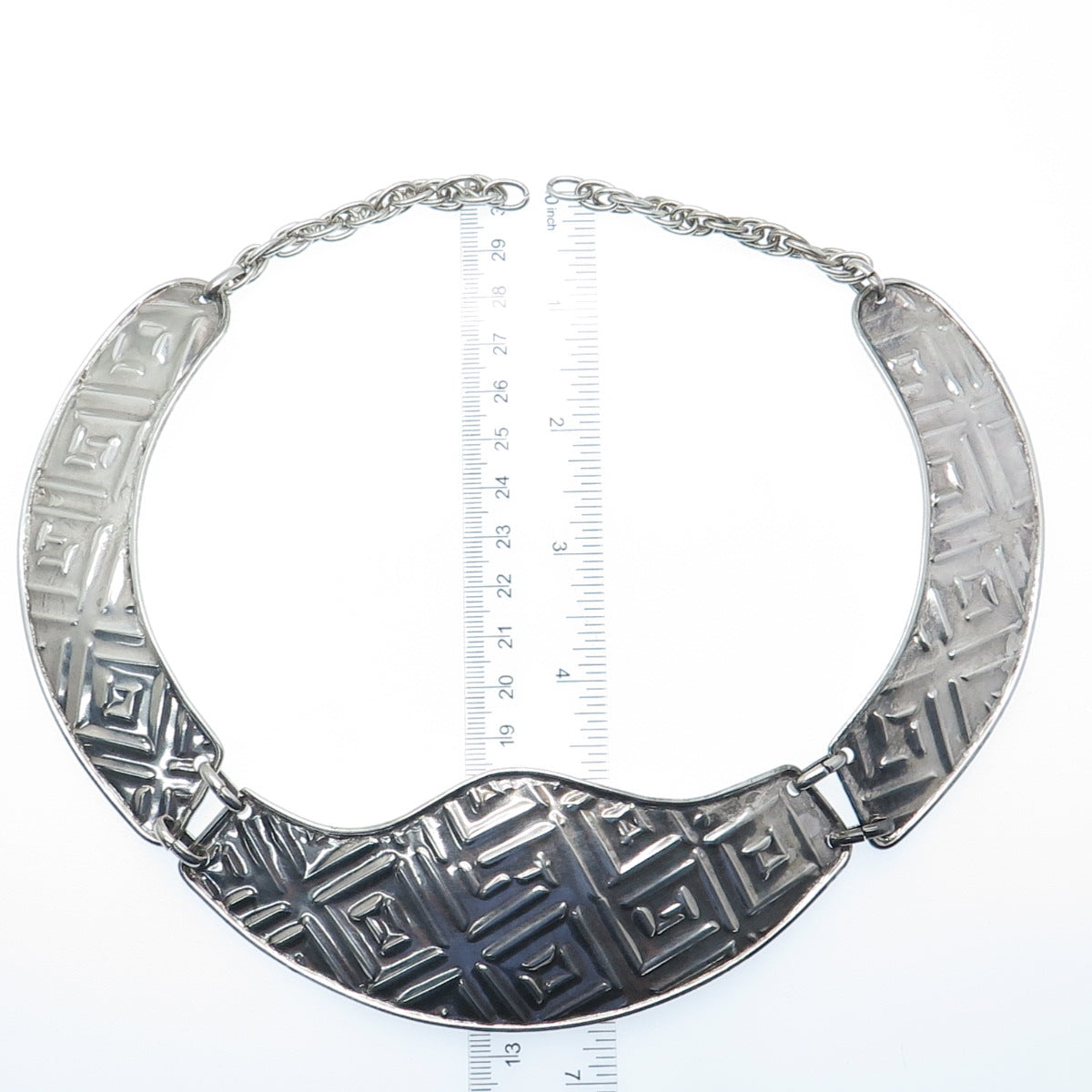 925 Sterling Silver Vintage Geometric Statement Necklace 20" (missing lock)