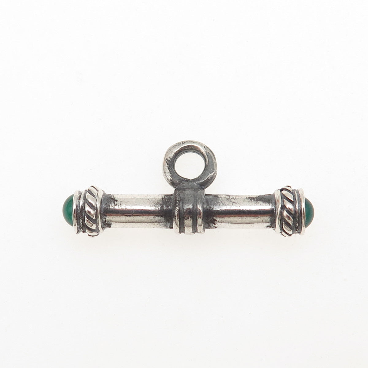 925 Sterling Silver Vintage Green Chalcedony Bracelet / Necklace Toggle Lock Bar