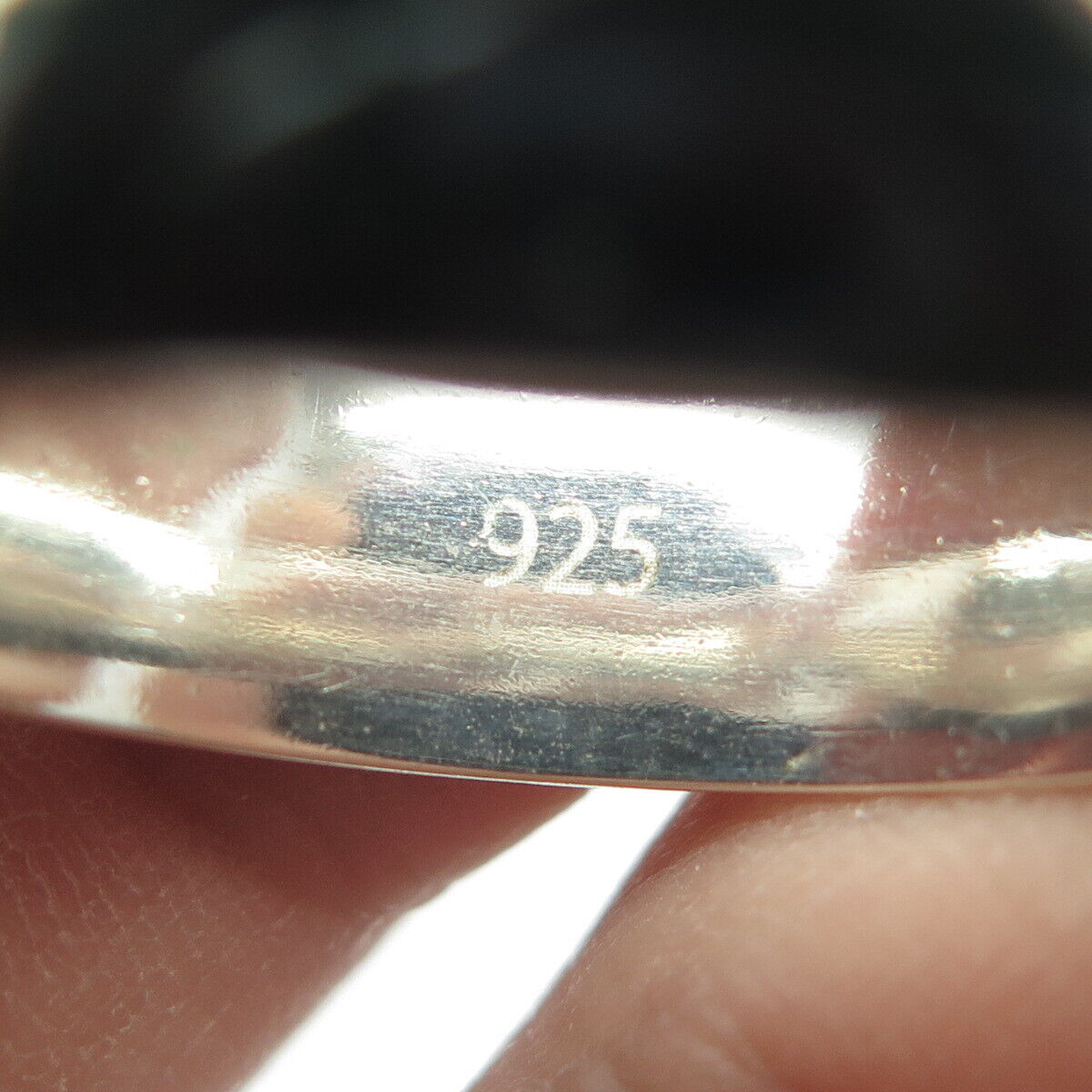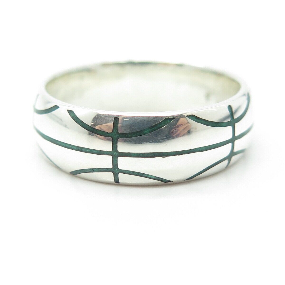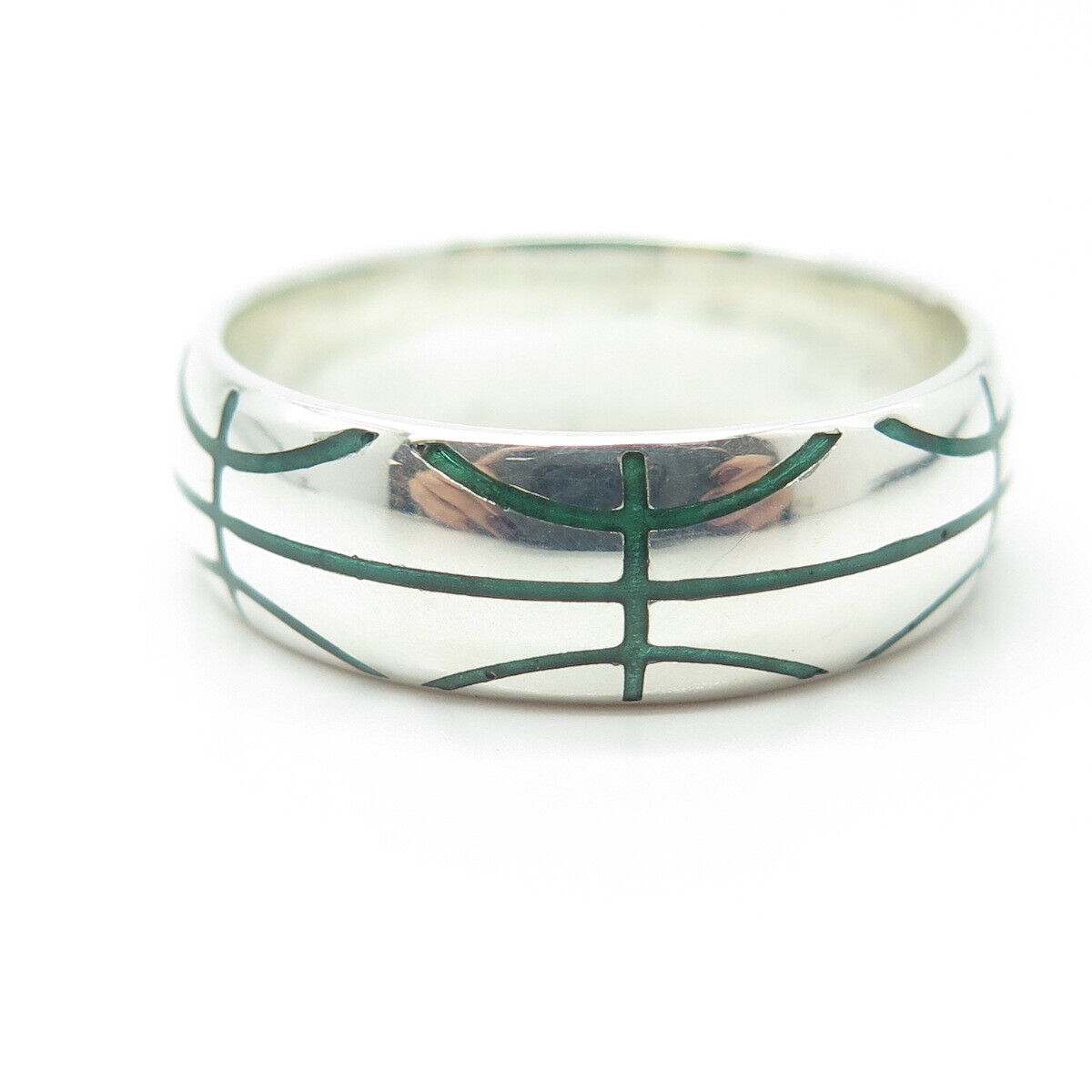 925 Sterling Silver Vintage Green Enamel Tribal Band Ring Size 12.25
