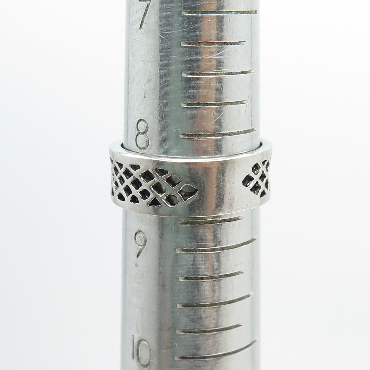 925 Sterling Silver Vintage Grid / Cage Band Ring Size 8.75
