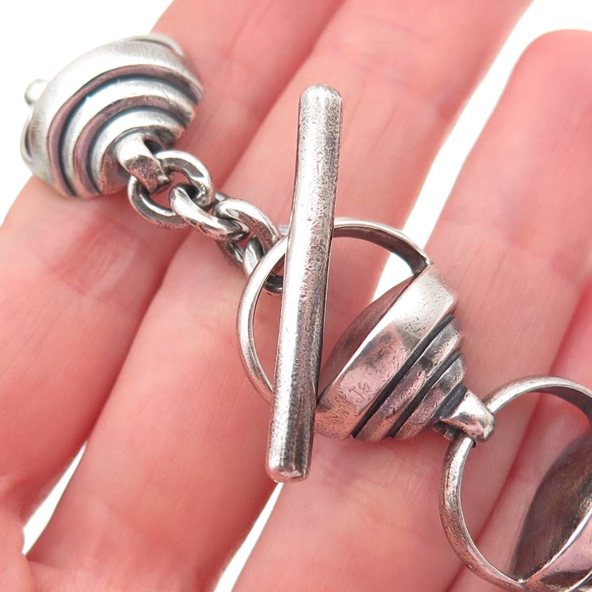 925 Sterling Silver Vintage Heavy 63.6g Modernist Link Oxidized Bracelet 6.5"