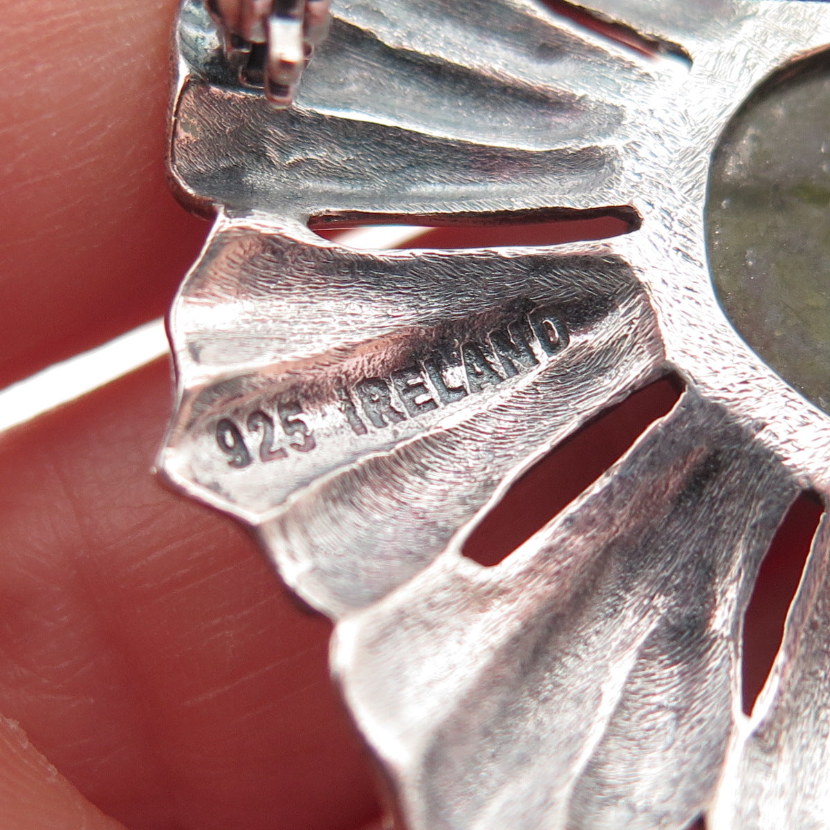 925 Sterling Silver Vintage Ireland Connemara Marble Flower Pin Brooch / Pendant