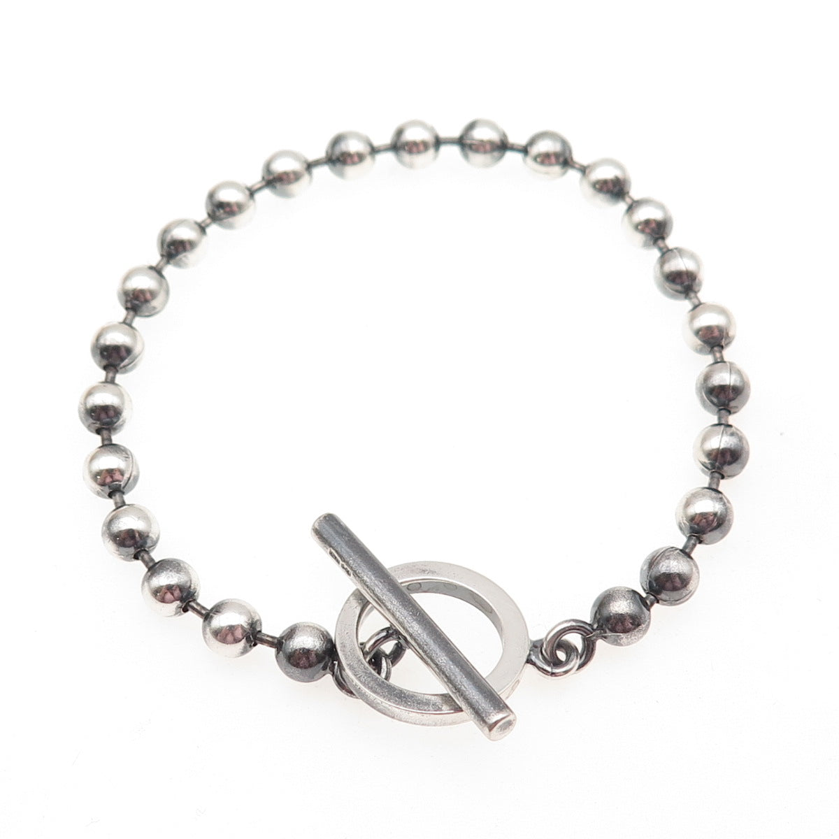 925 Sterling Silver Vintage Italy Ball Beaded Link Bracelet 6.75"