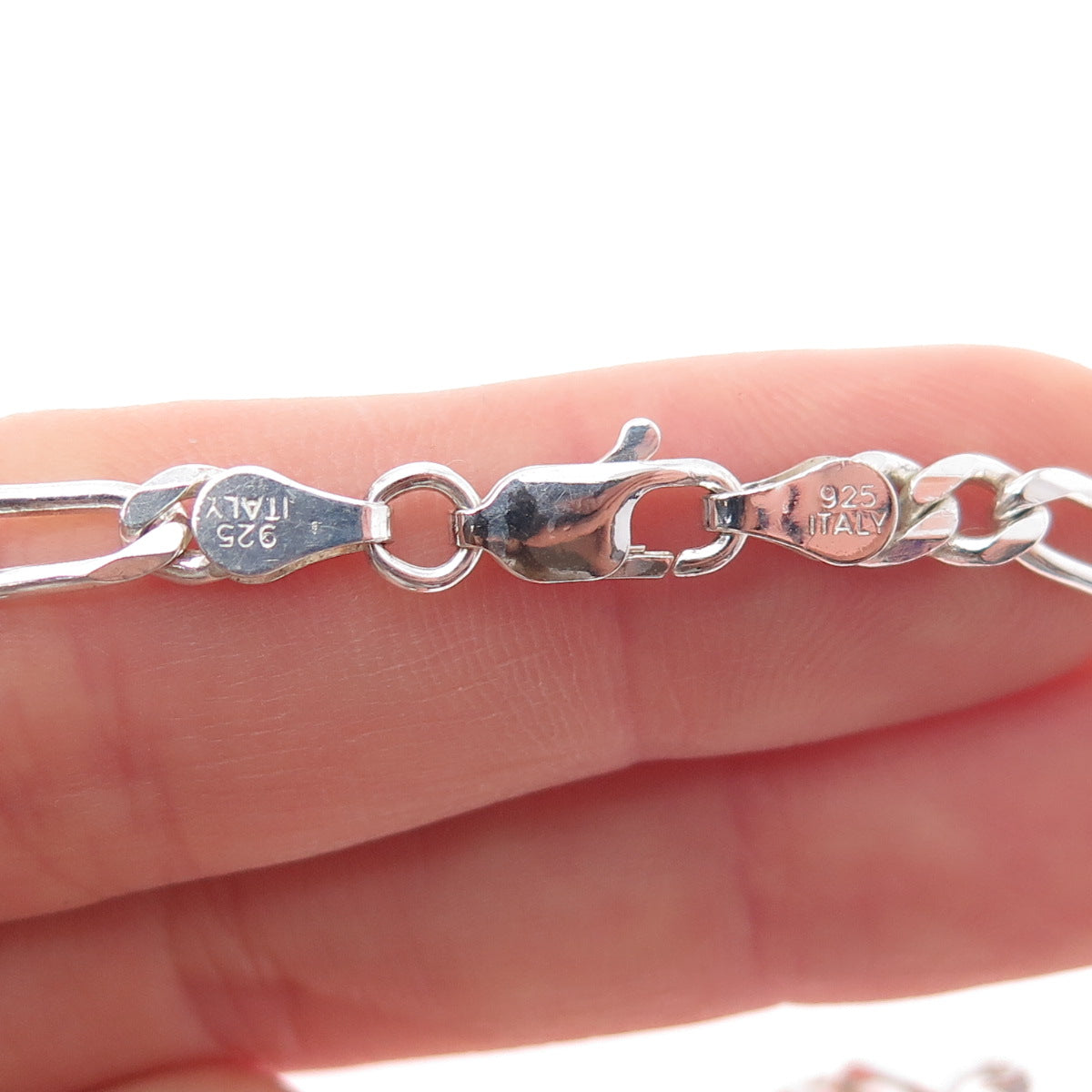 925 Sterling Silver Vintage Italy Figaro Chain Necklace 22"