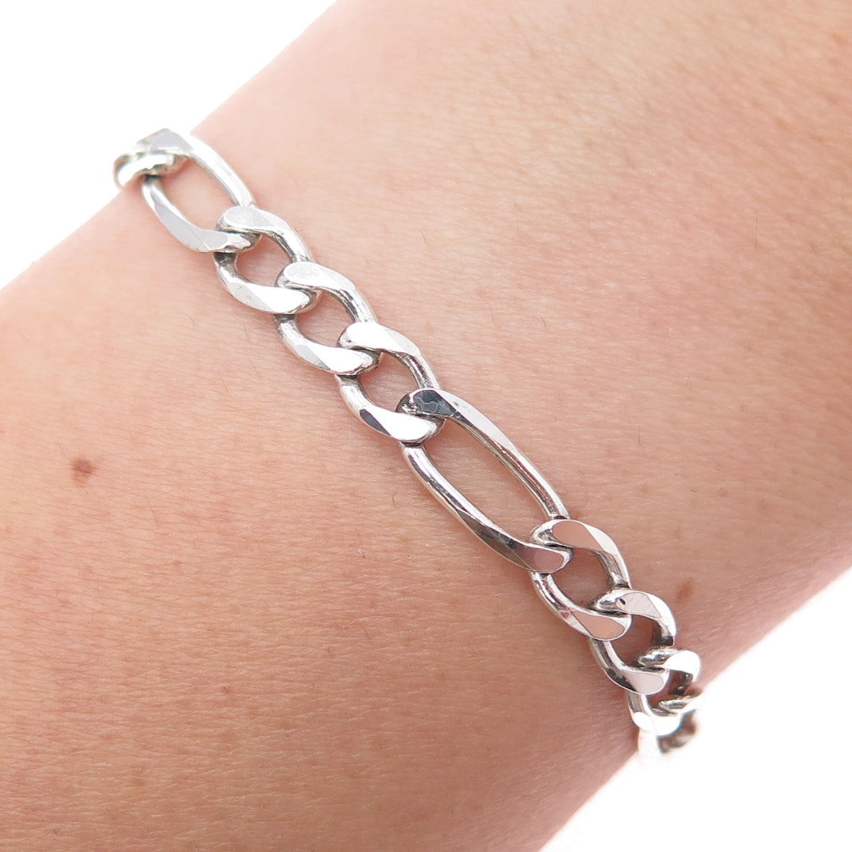 925 Sterling Silver Vintage Italy Figaro Link Bracelet 8"
