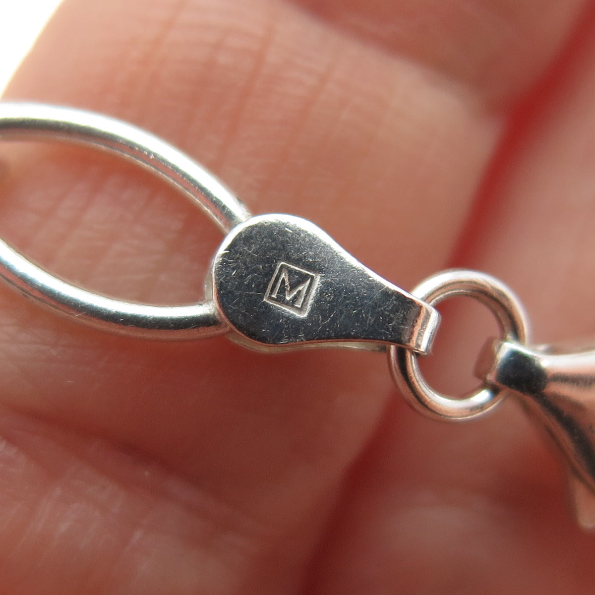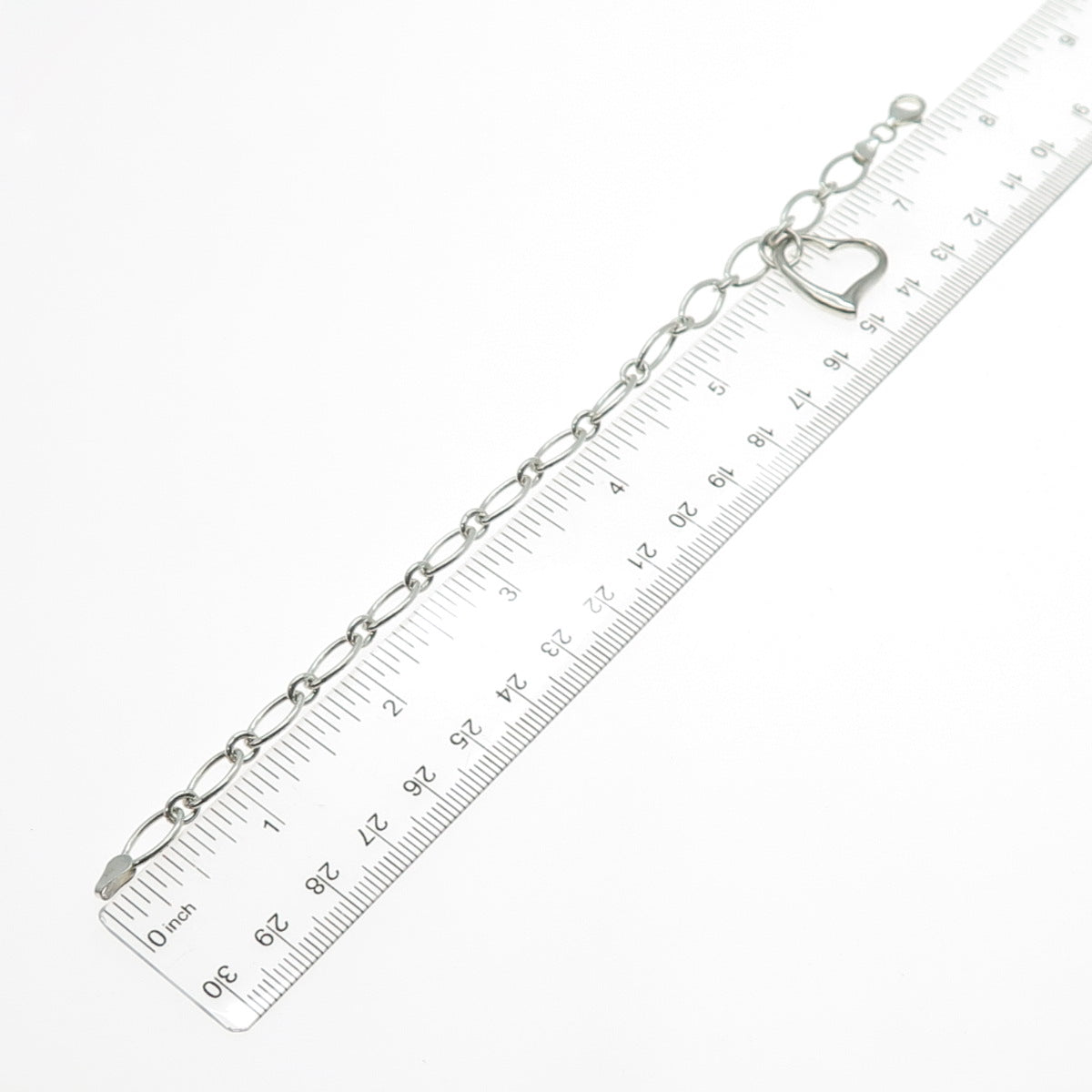 925 Sterling Silver Vintage Italy Heart Dangle Charm Oval Link Bracelet 7.25"