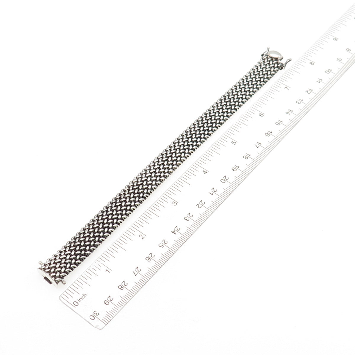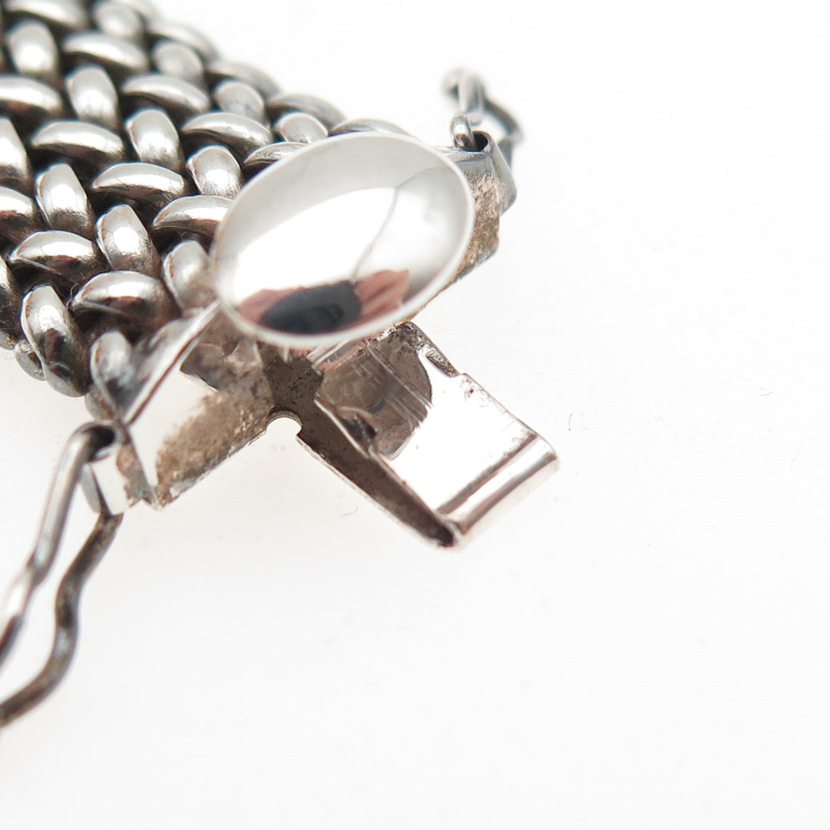 925 Sterling Silver Vintage Italy Mesh Link Oxidized Bracelet 7"