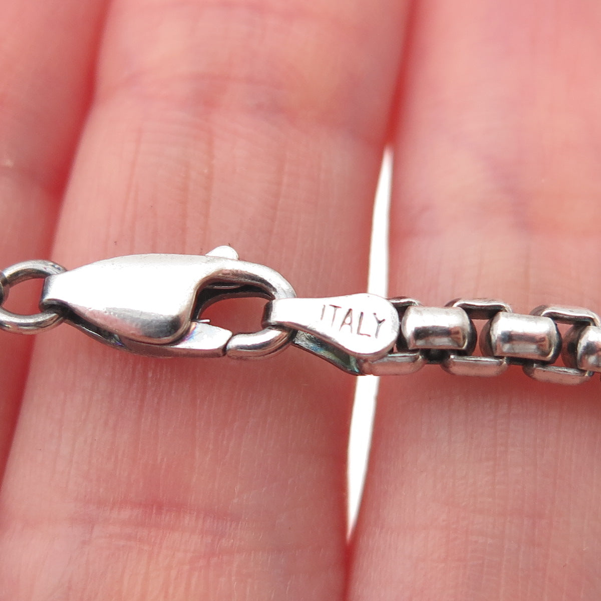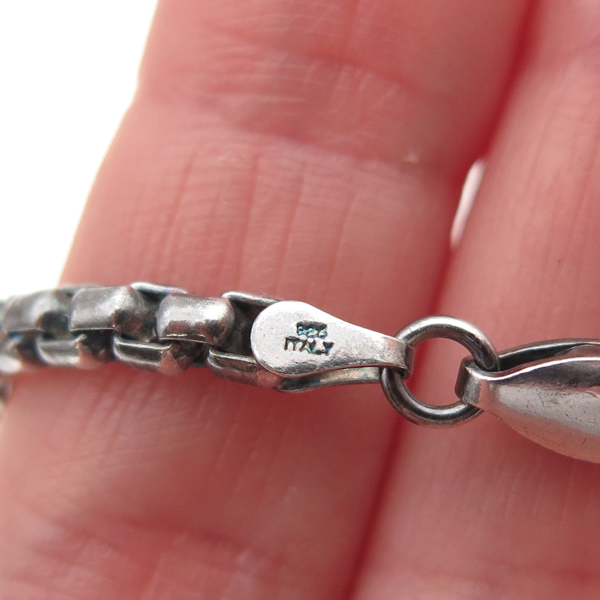 925 Sterling Silver Vintage Italy Round Box Chain Oxidized Necklace 18"