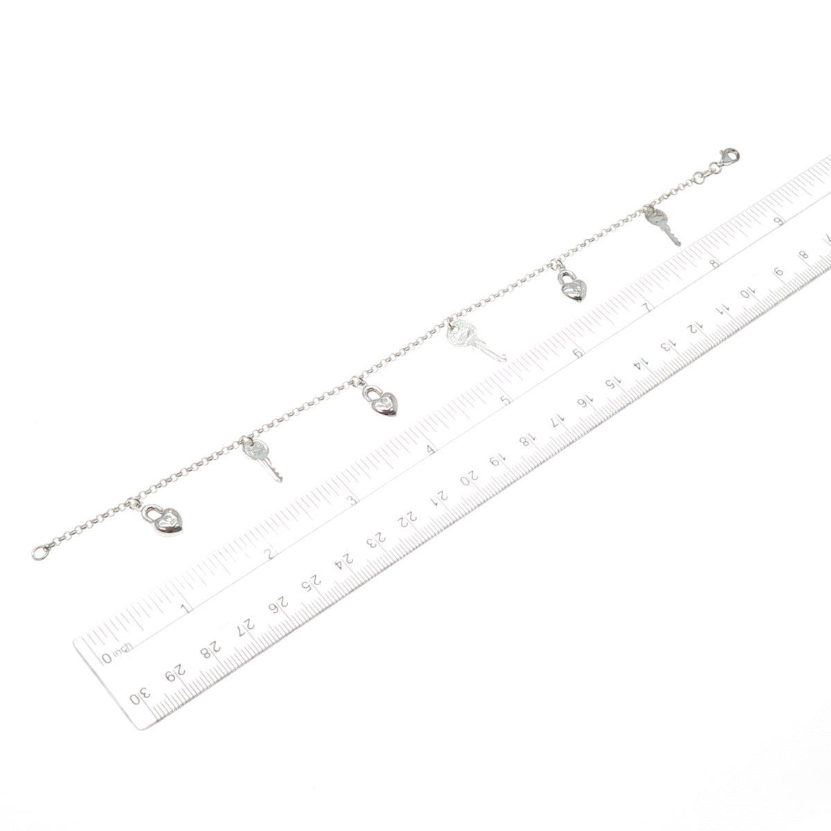 925 Sterling Silver Vintage Key & Heart Charm Rolo Link Anklet / Bracelet 9"