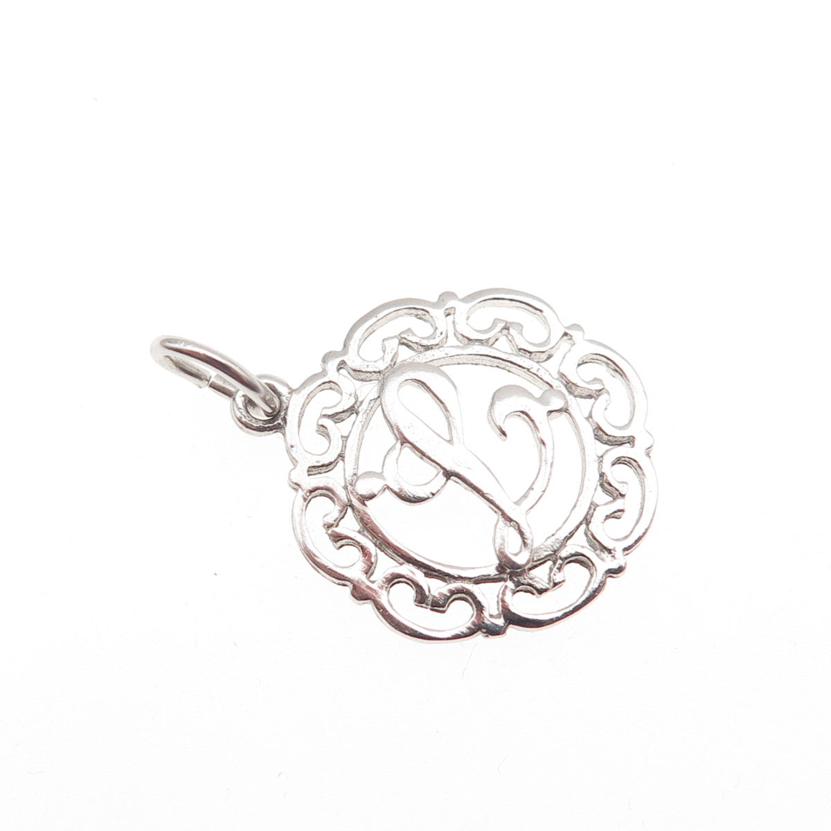 925 Sterling Silver Vintage Letter L Initial Ornate Charm Pendant