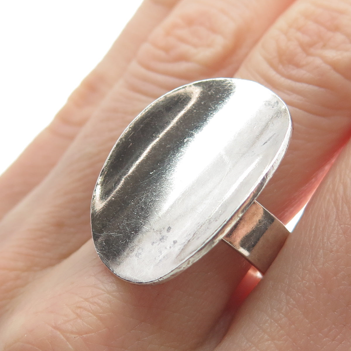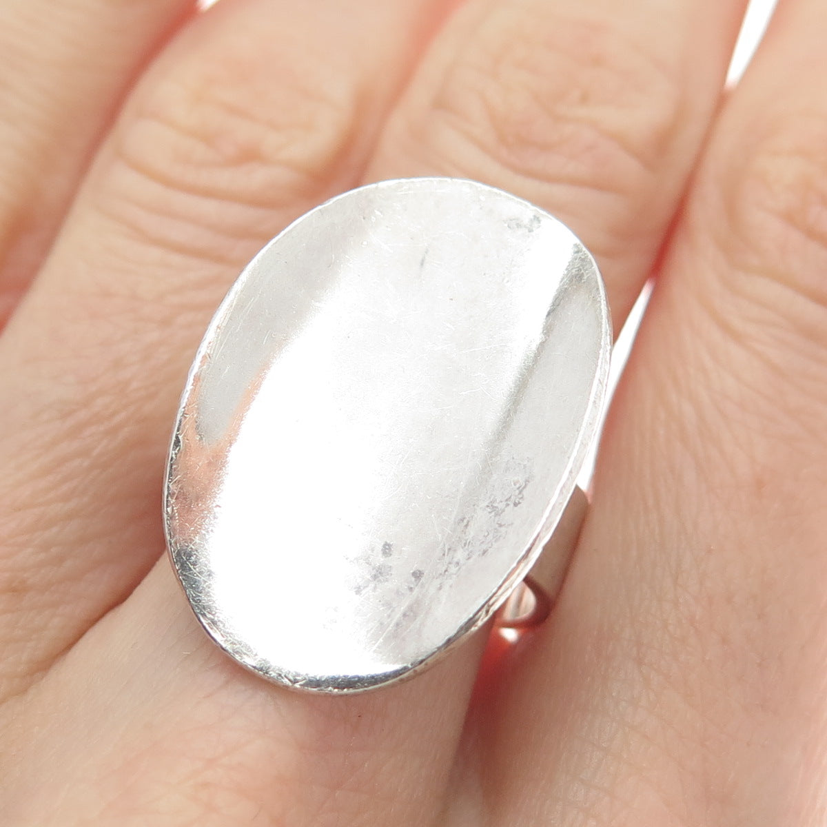 925 Sterling Silver Vintage Mexico Concave Smooth Adjustable Ring Size 8