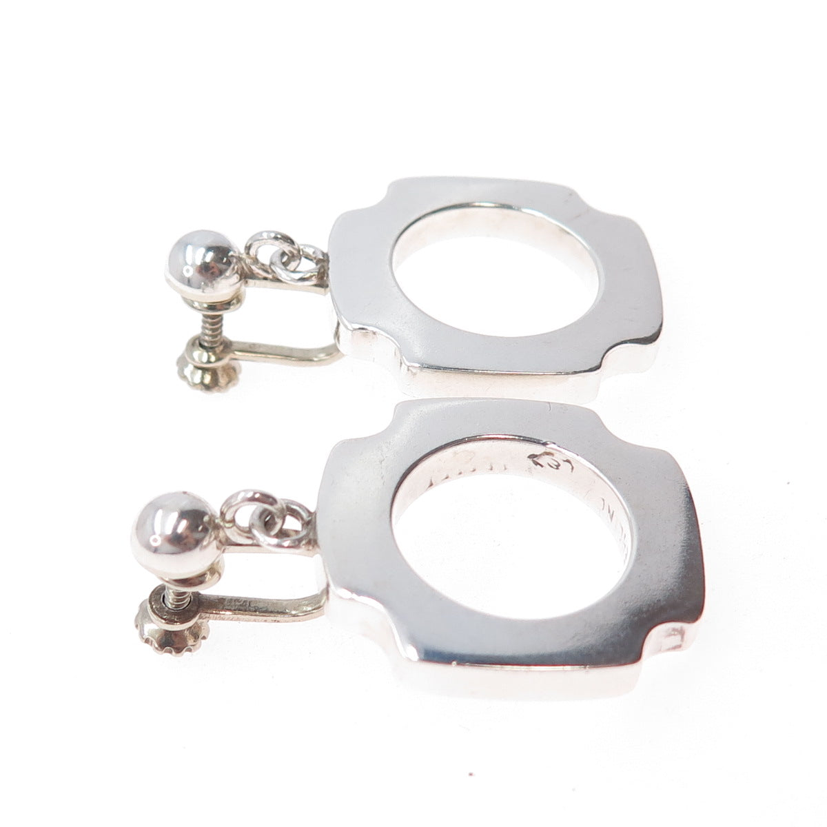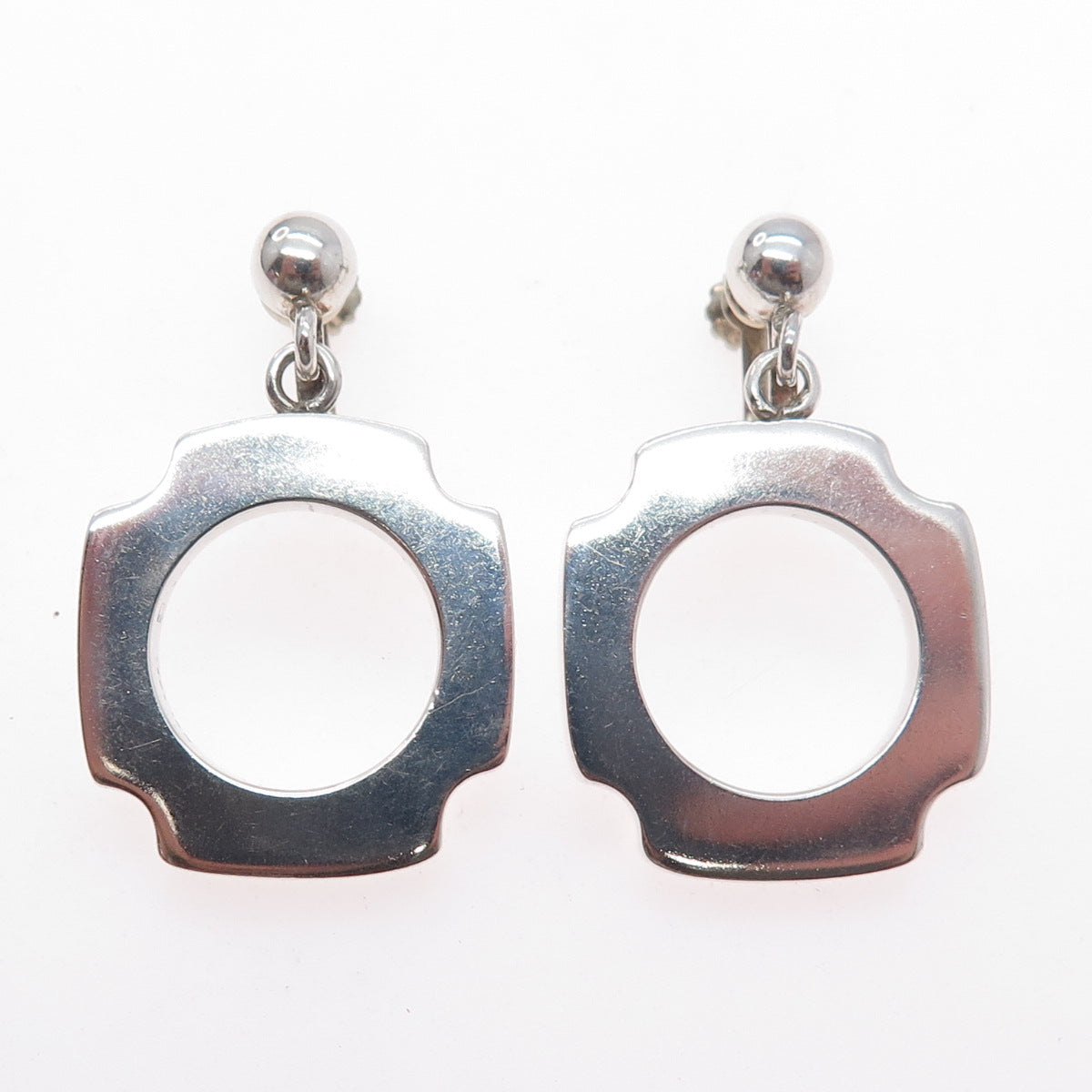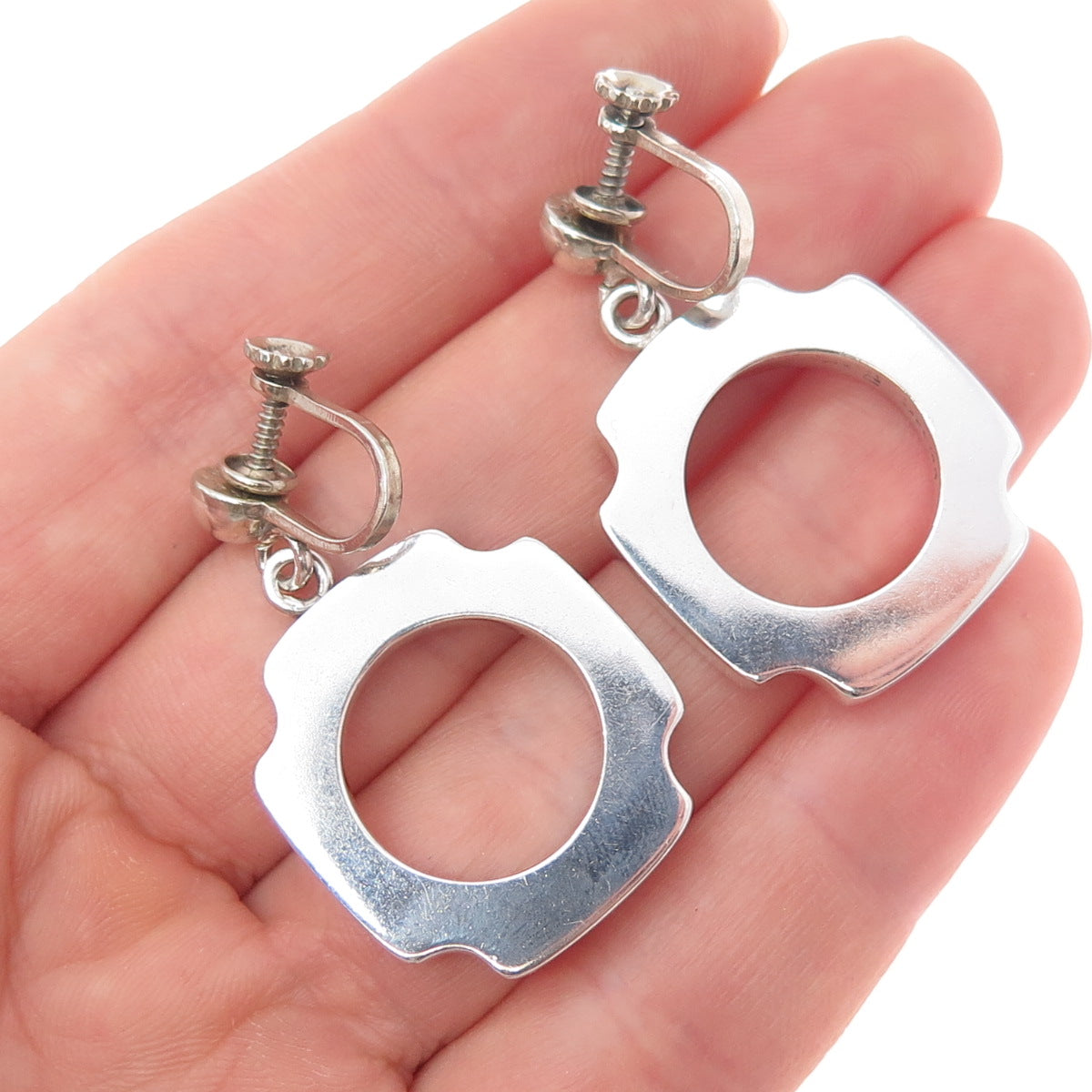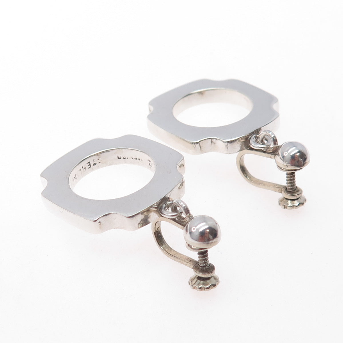925 Sterling Silver Vintage Mexico Modernist Cross Screw Back Dangle Earrings