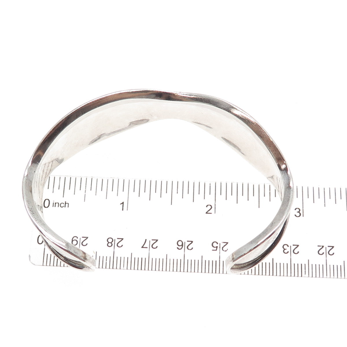 925 Sterling Silver Vintage Mexico Modernist Wavy Adjustable Cuff Bracelet 7"
