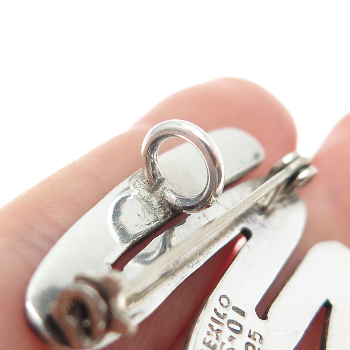 925 Sterling Silver Vintage Mexico Modernist Zig Zag Pin Brooch / Pendant