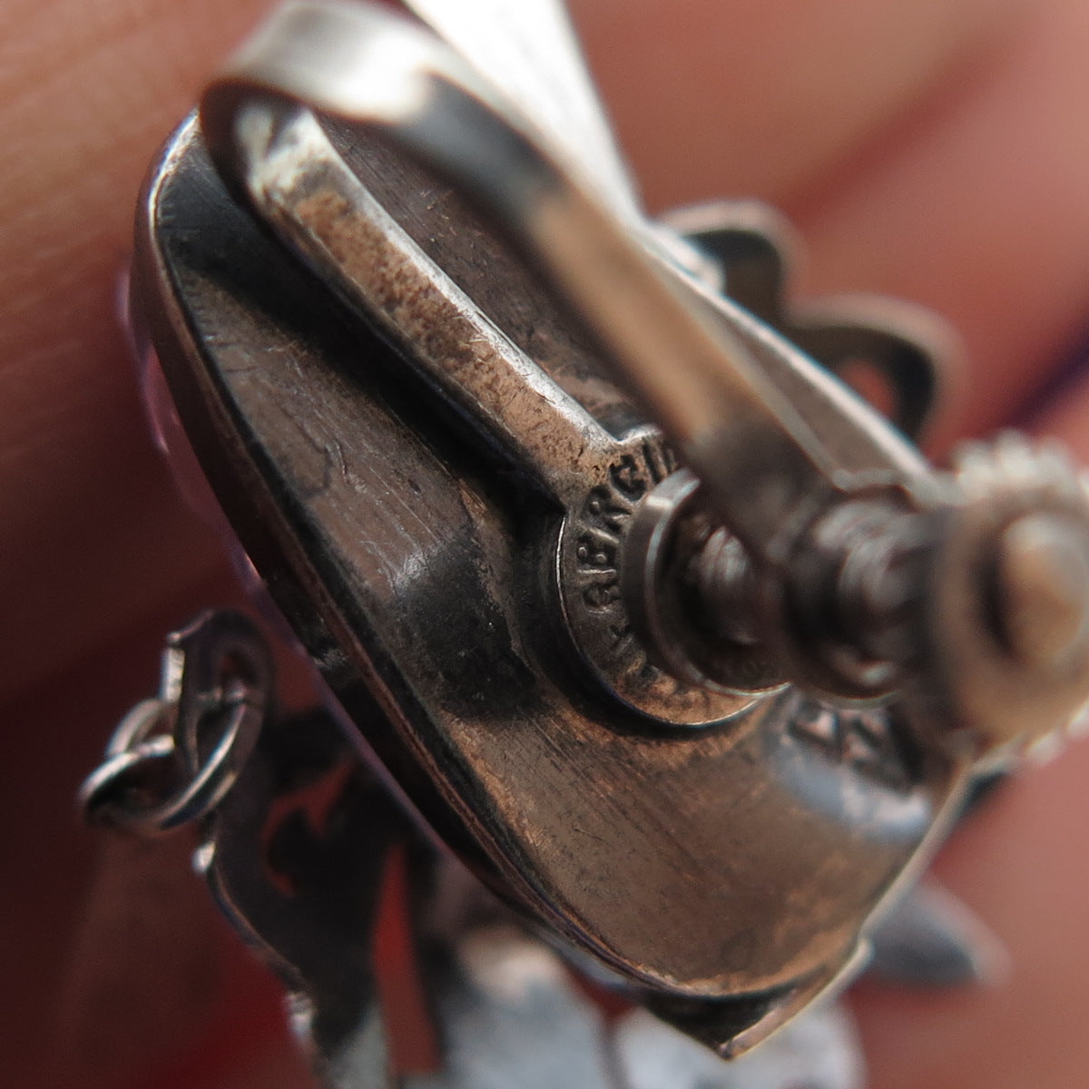 925 Sterling Silver Vintage Mexico Real Amethyst Goddess Screw Back Earrings