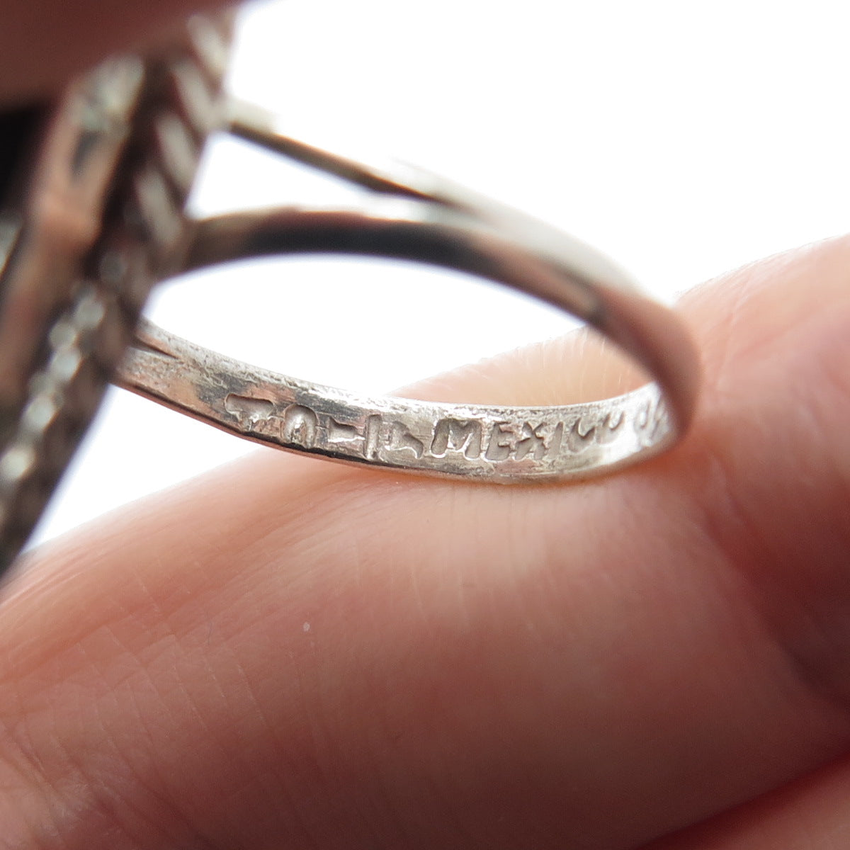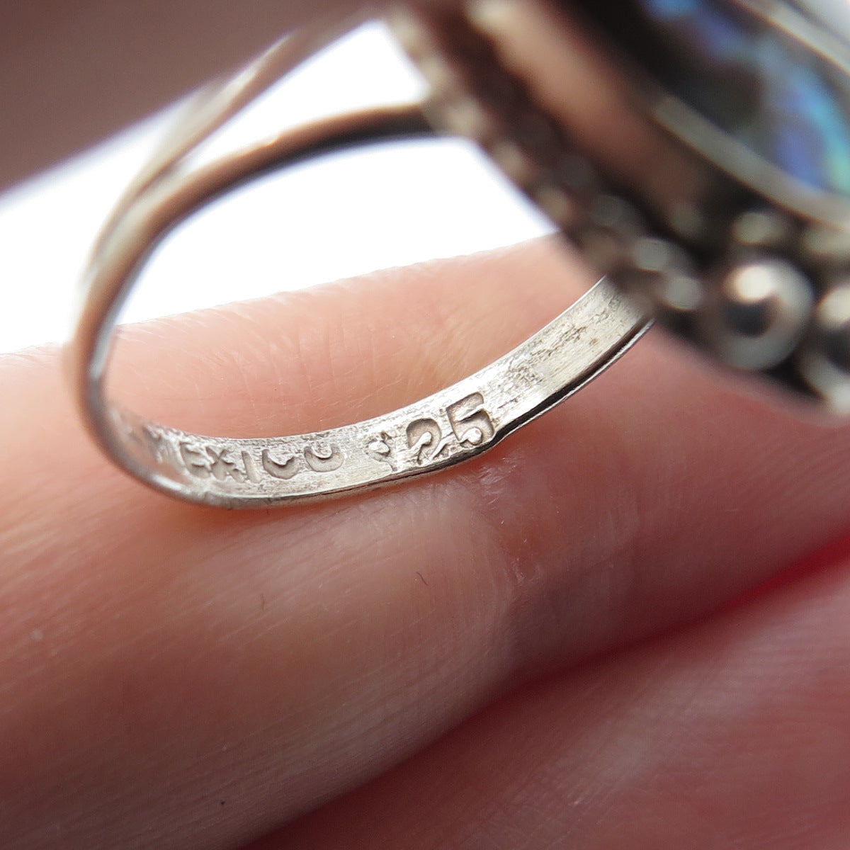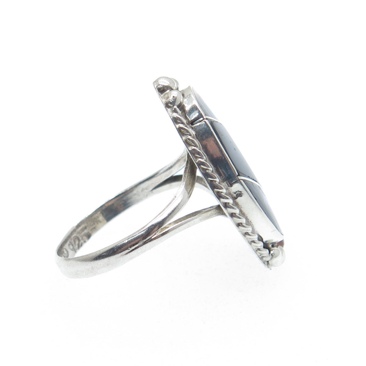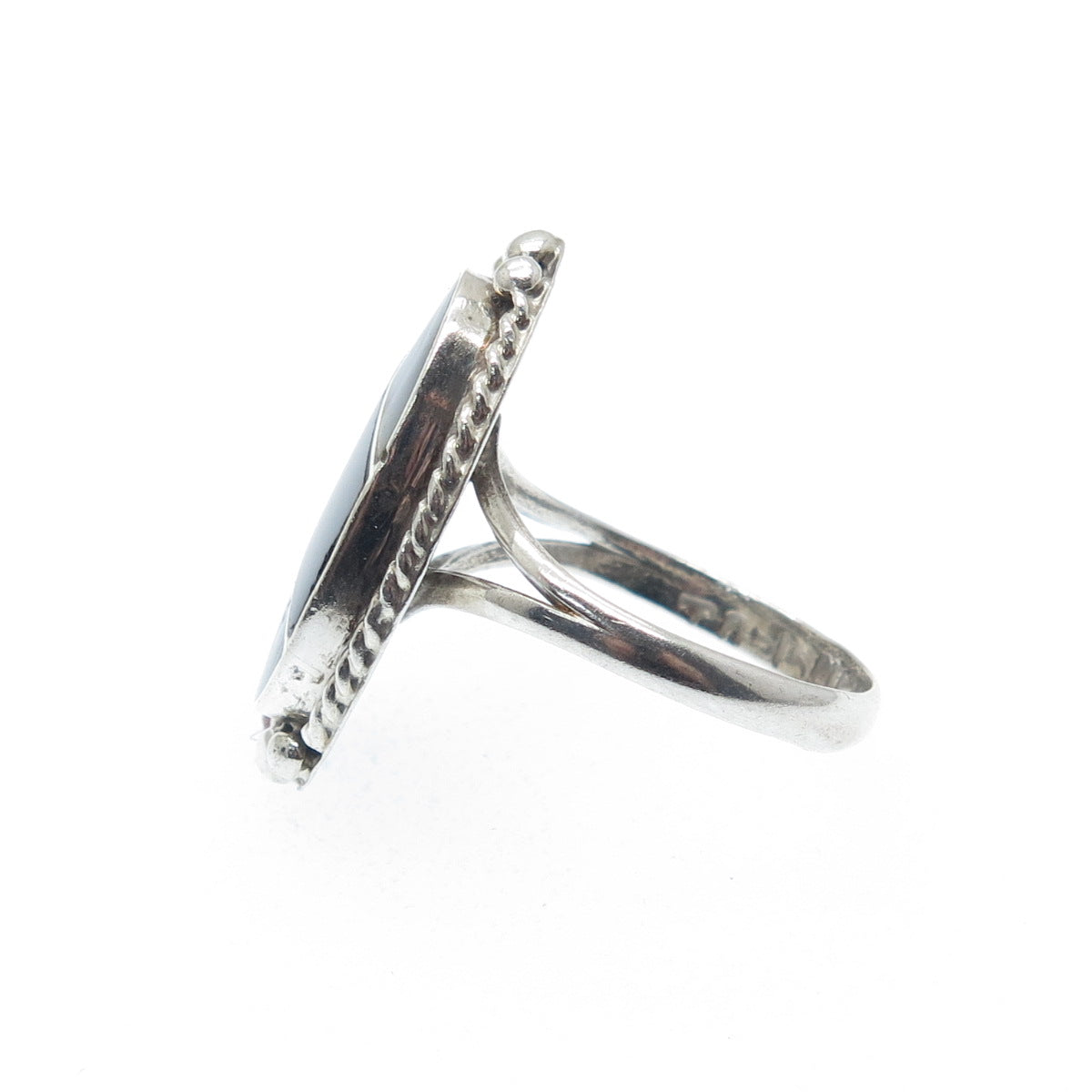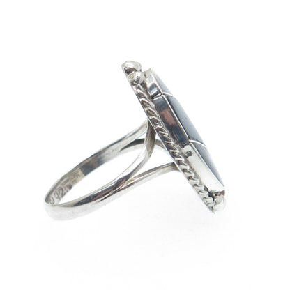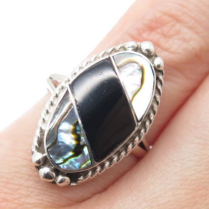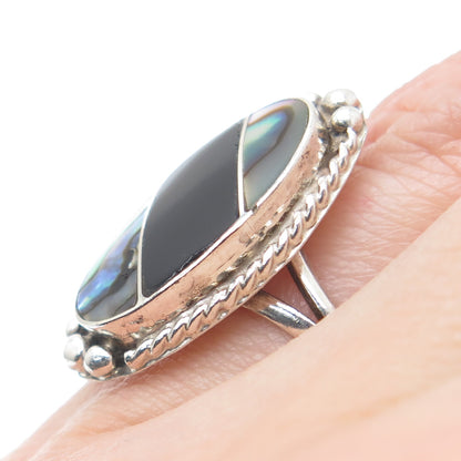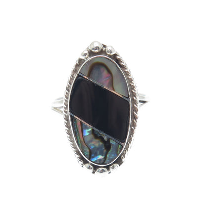 925 Sterling Silver Vintage Mexico Real Black Onyx Abalone Shell Ring Size 5.75