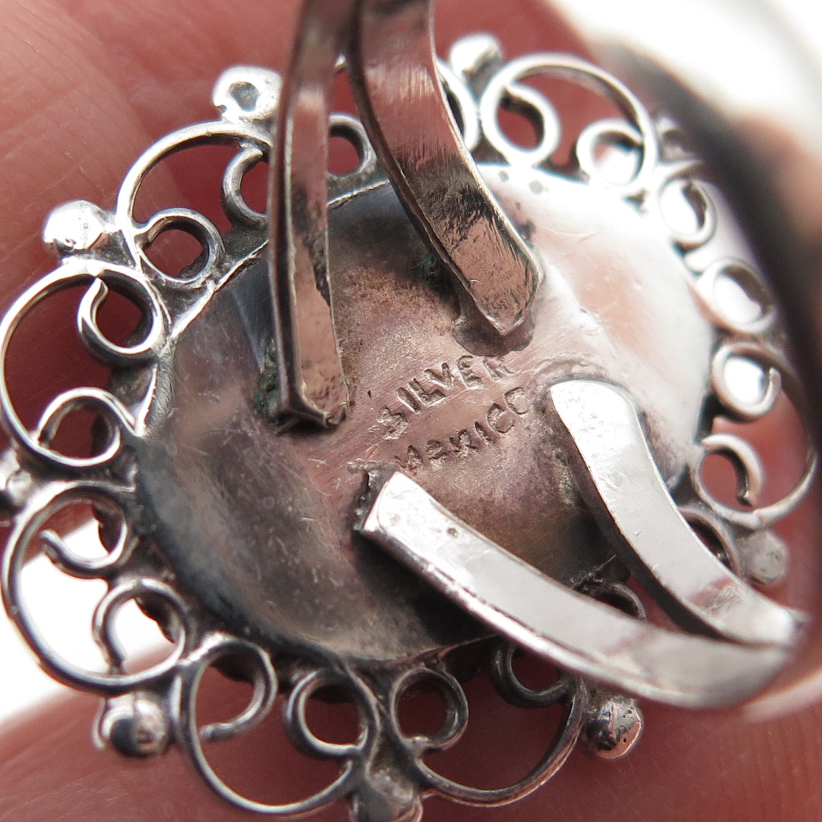 925 Sterling Silver Vintage Mexico Real Black Onyx Aztec God Ring Size 7.5