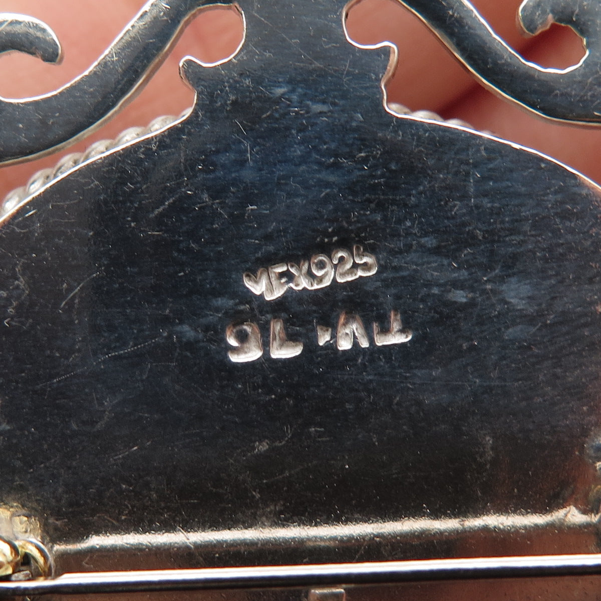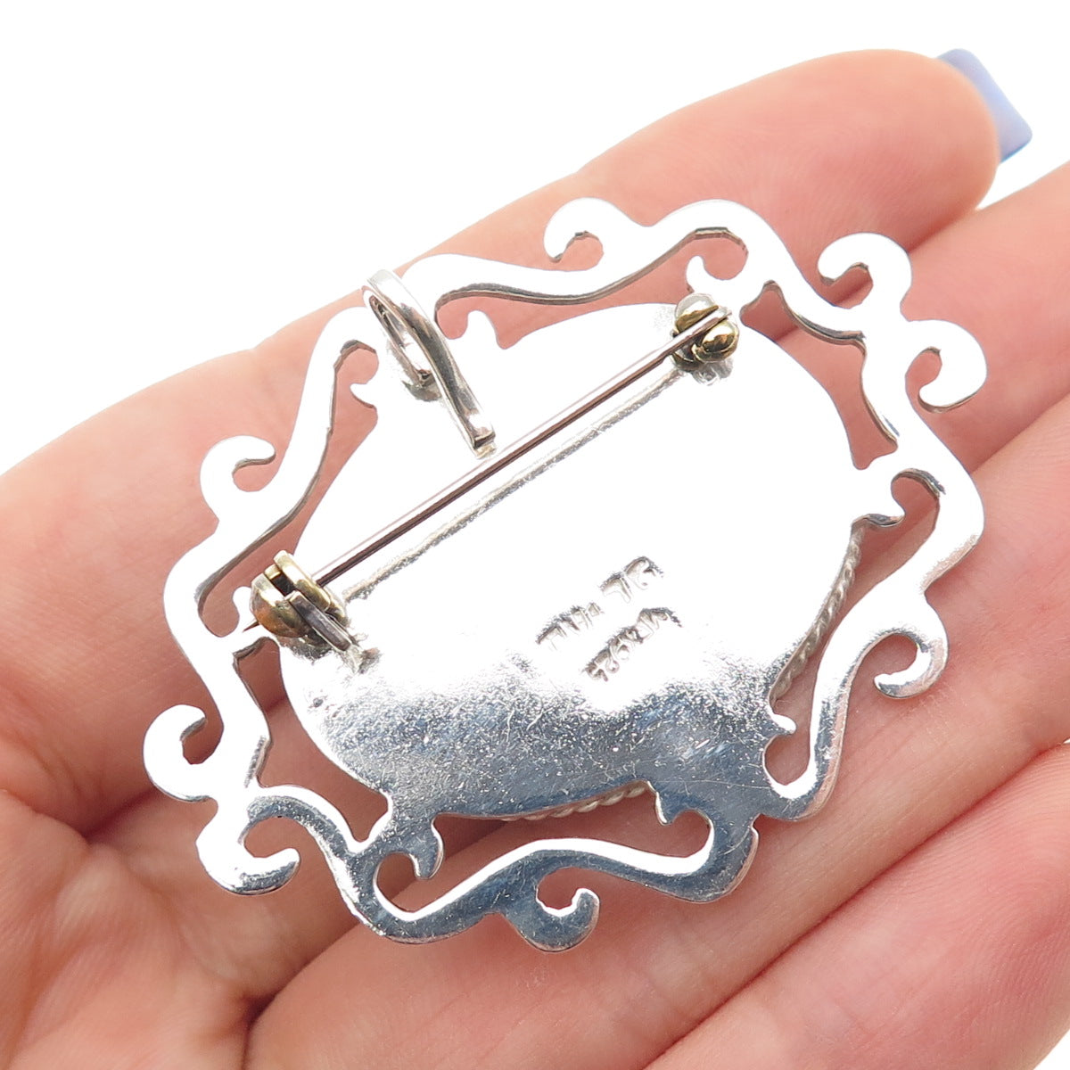 925 Sterling Silver Vintage Mexico Real Black Onyx Swirl Pin Brooch / Pendant