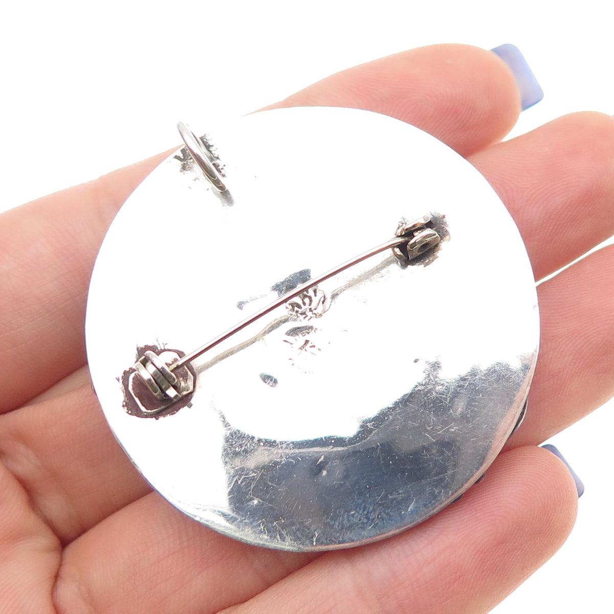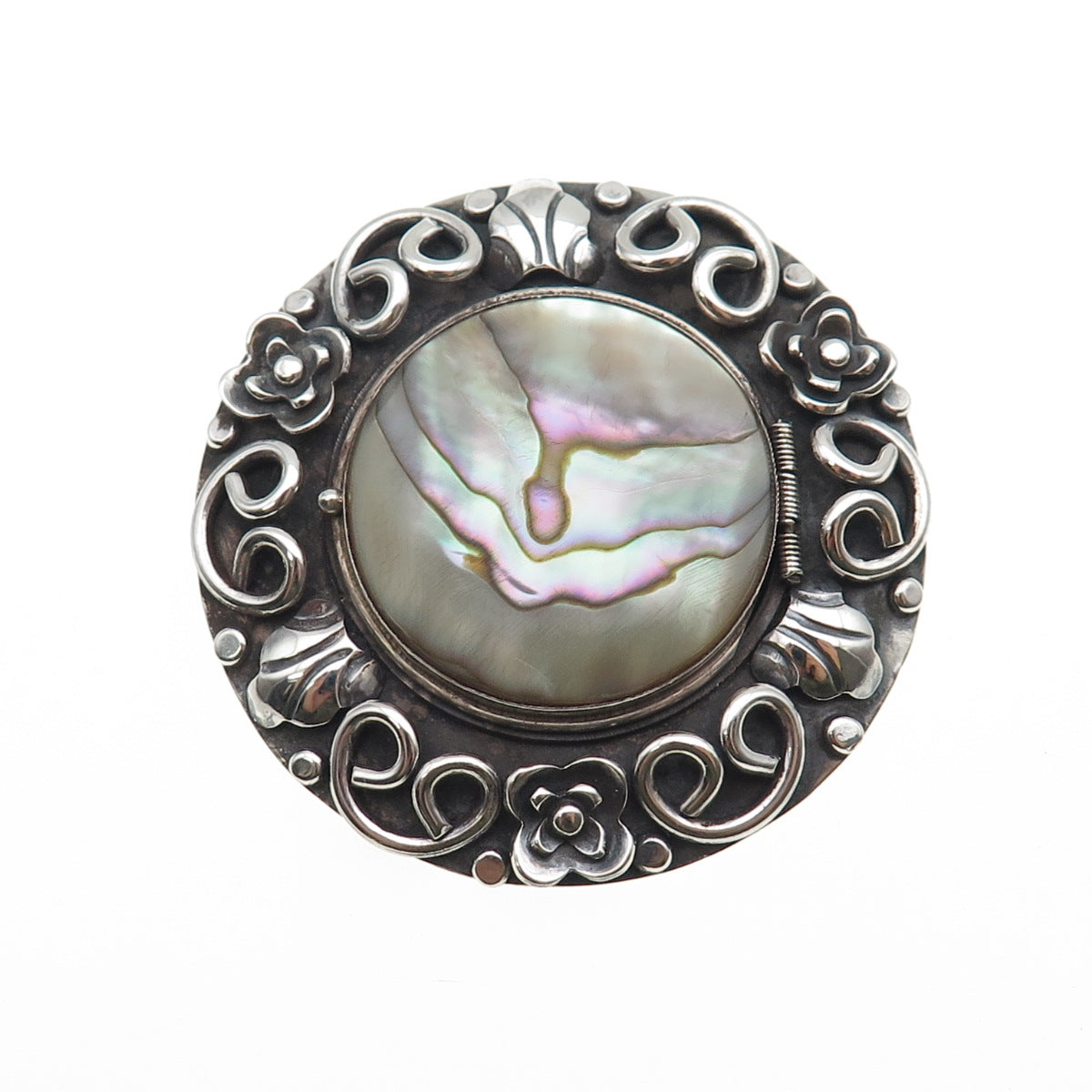 925 Sterling Silver Vintage Mexico Real MOP Oxidized Locket Pin Brooch / Pendant