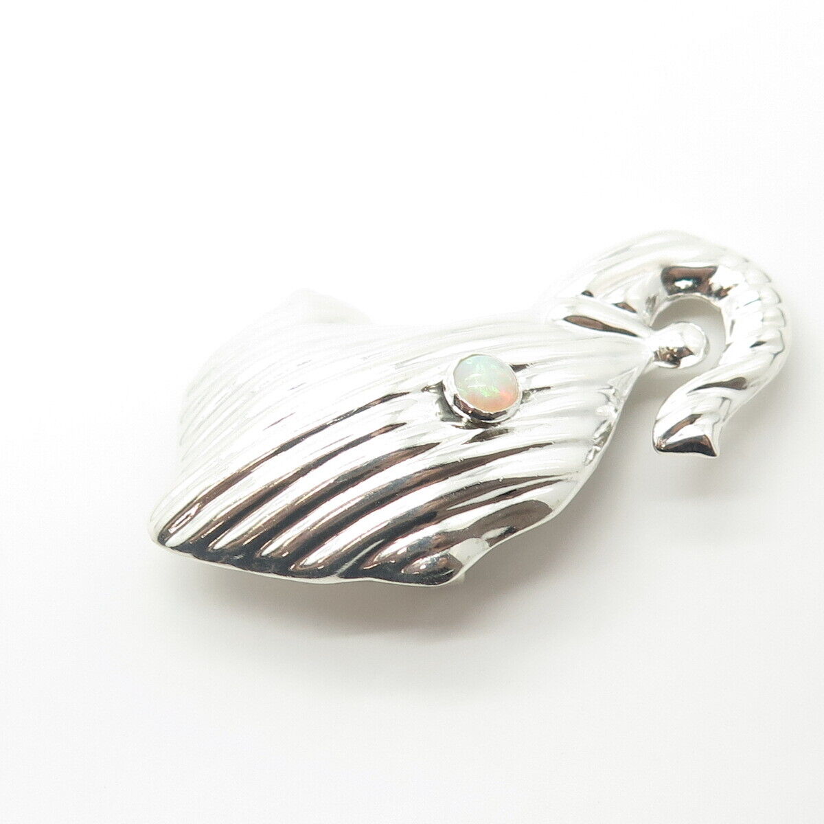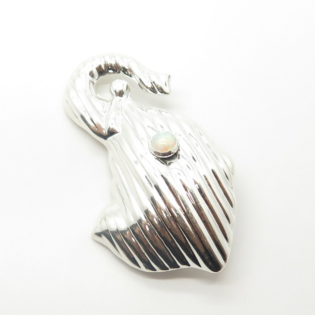 925 Sterling Silver Vintage Mexico Real Opal Elephant Pin Brooch / Pendant