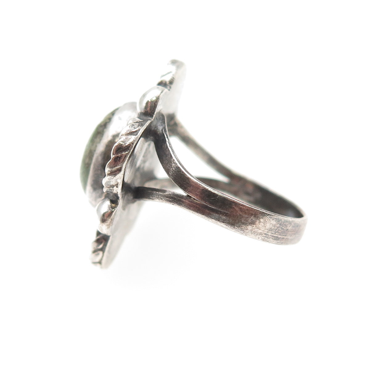925 Sterling Silver Vintage Mexico Real Turquoise Flower Oxidized Ring Size 6.25