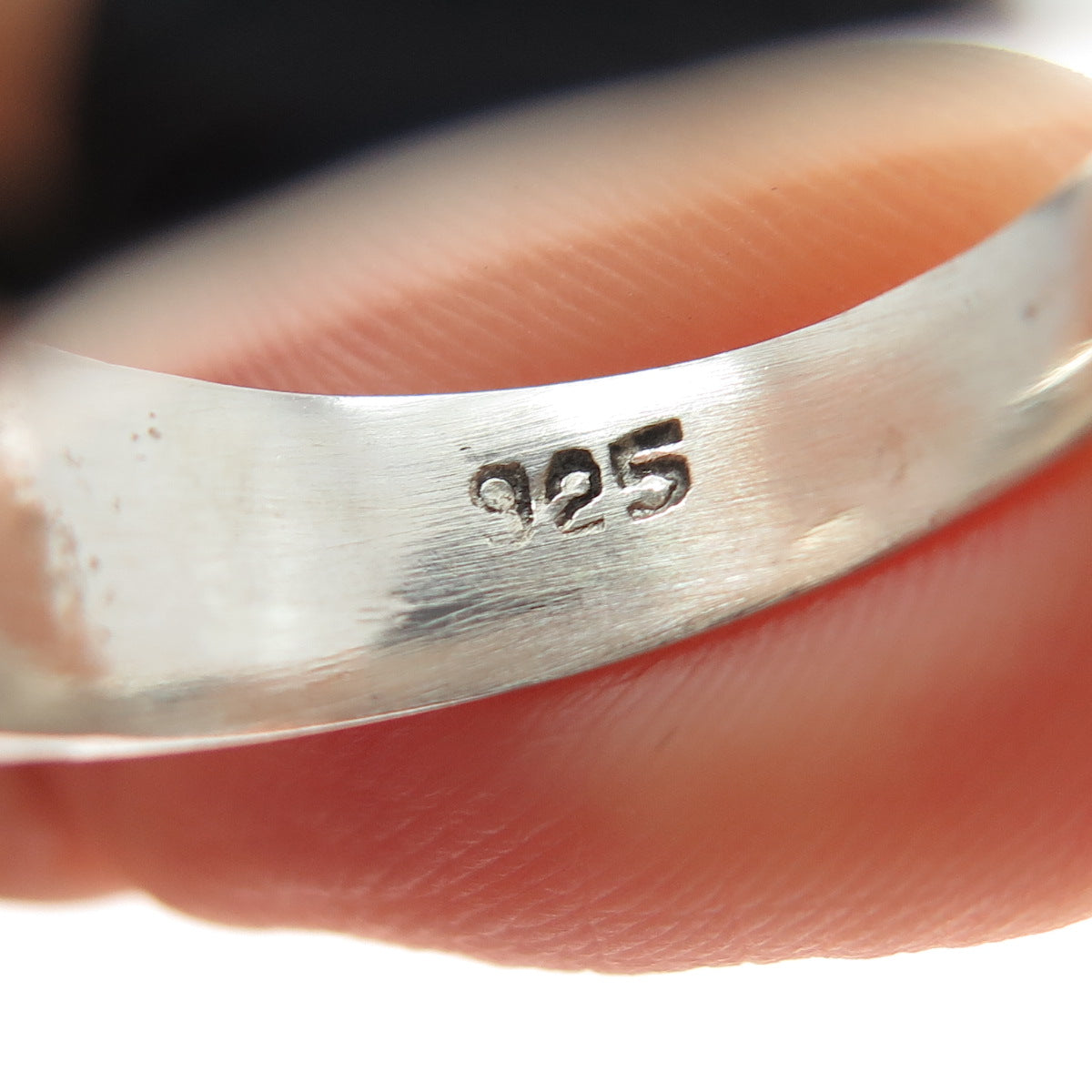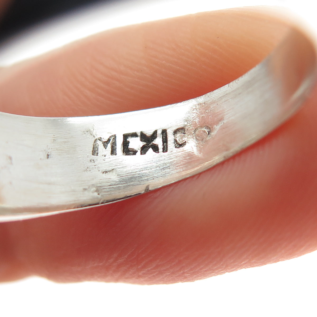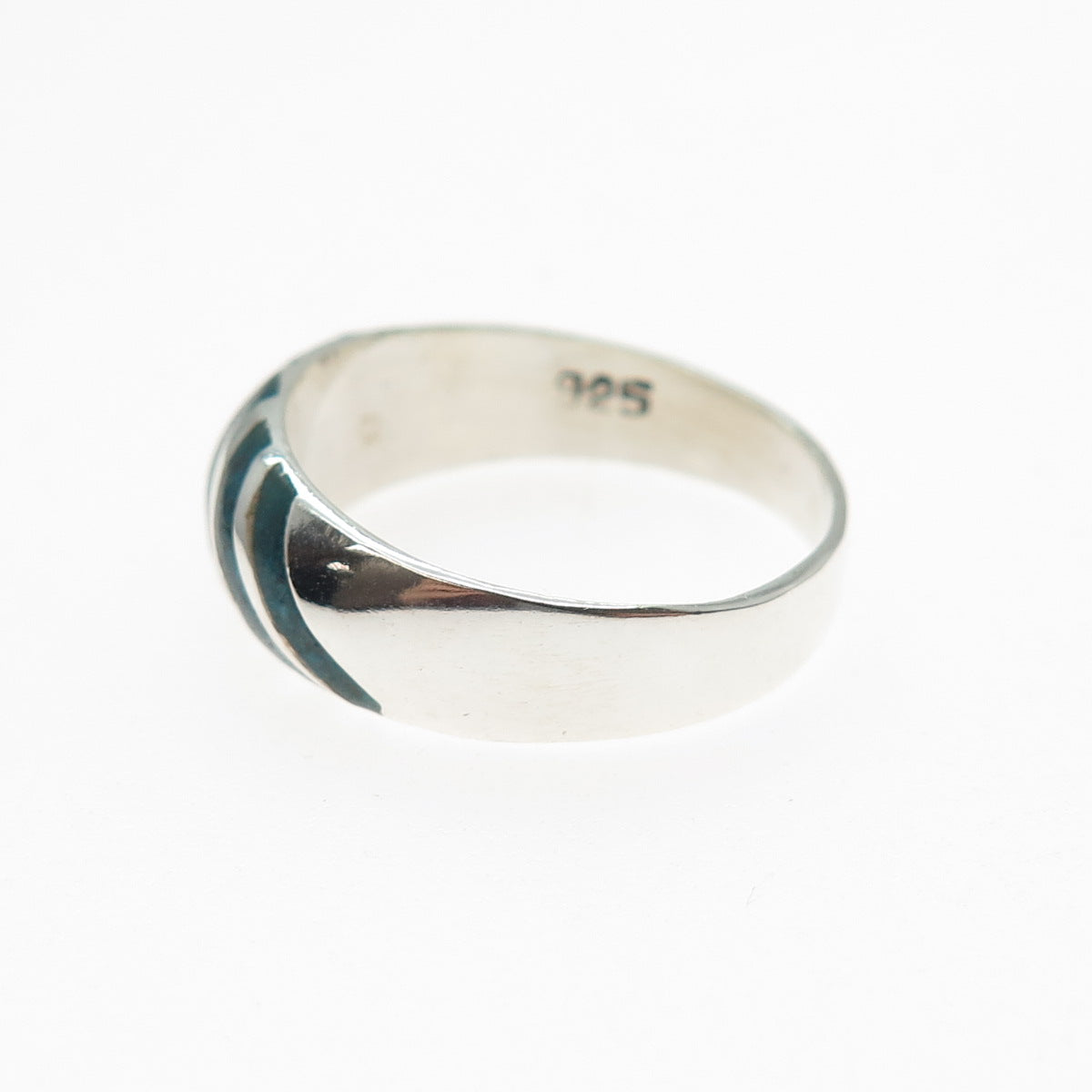 925 Sterling Silver Vintage Mexico Real Turquoise Inlay Ribbed Ring Size 7