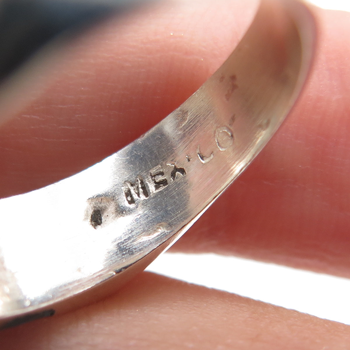 925 Sterling Silver Vintage Mexico Real Turquoise Inlay Ring Size 6.75
