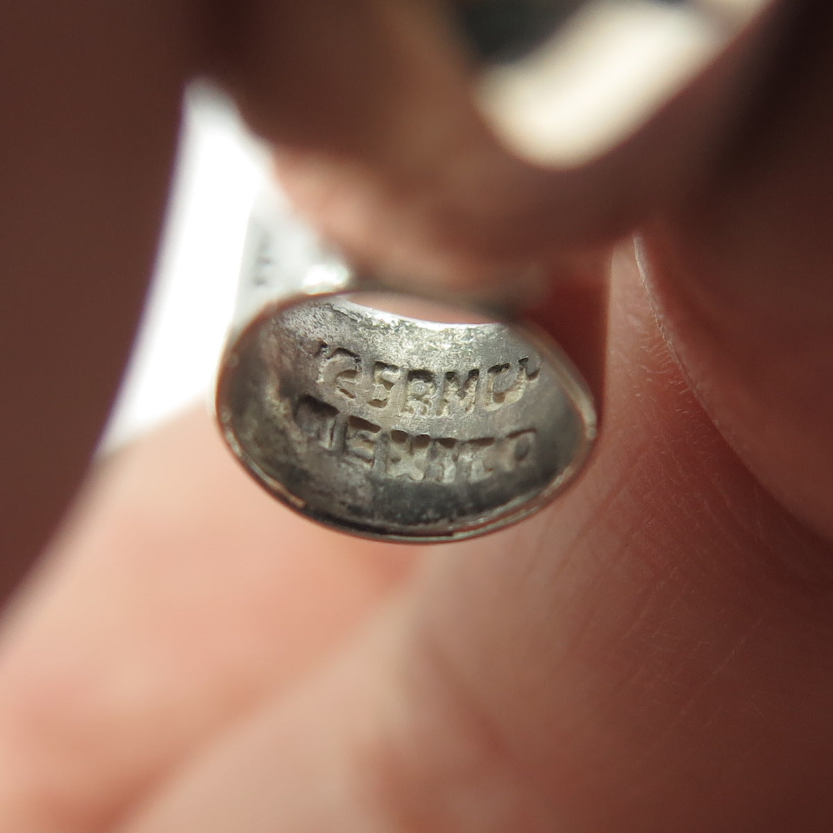 925 Sterling Silver Vintage Mexico Real Turquoise & Lapis Gem Dual Sided Pendant