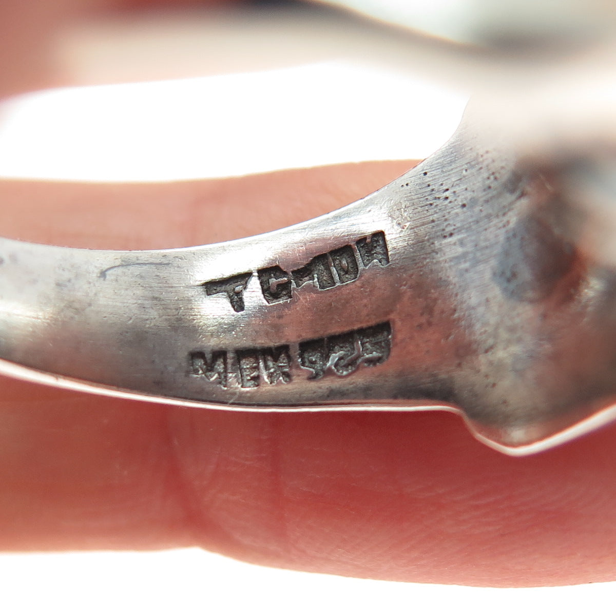 925 Sterling Silver Vintage Mexico Real Turquoise Modernist Sun Ring Size 13