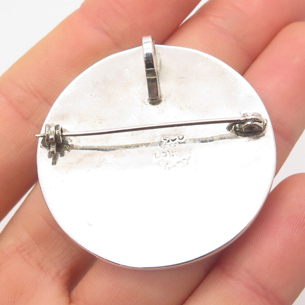925 Sterling Silver Vintage Mexico Turquoise Gem Inlay Tribal Brooch / Pendant
