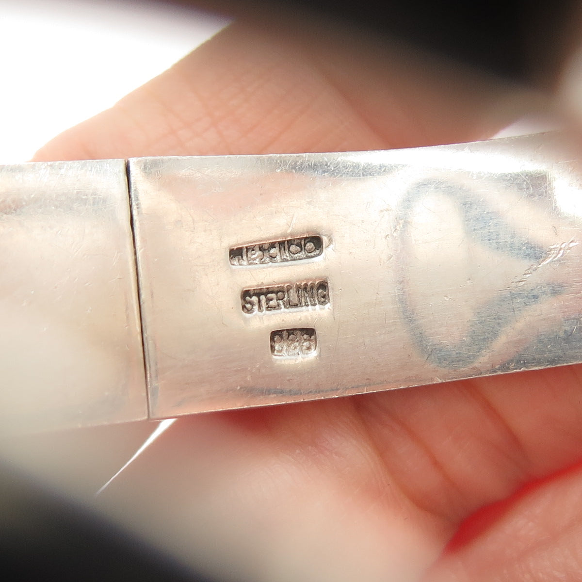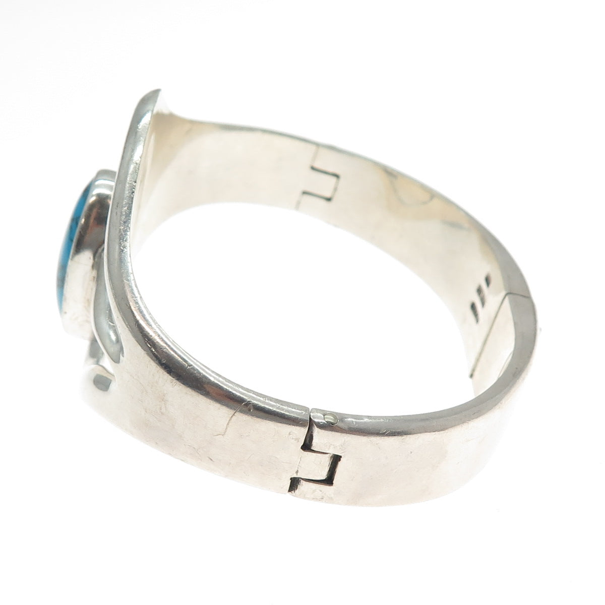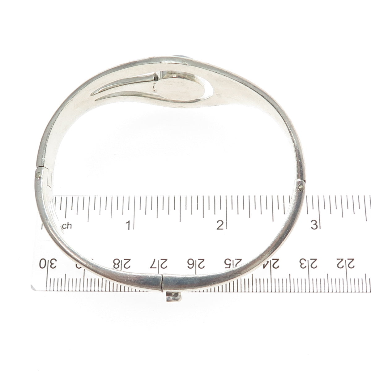 925 Sterling Silver Vintage Mexico Turquoise Modernist Bangle Bracelet 7.25"