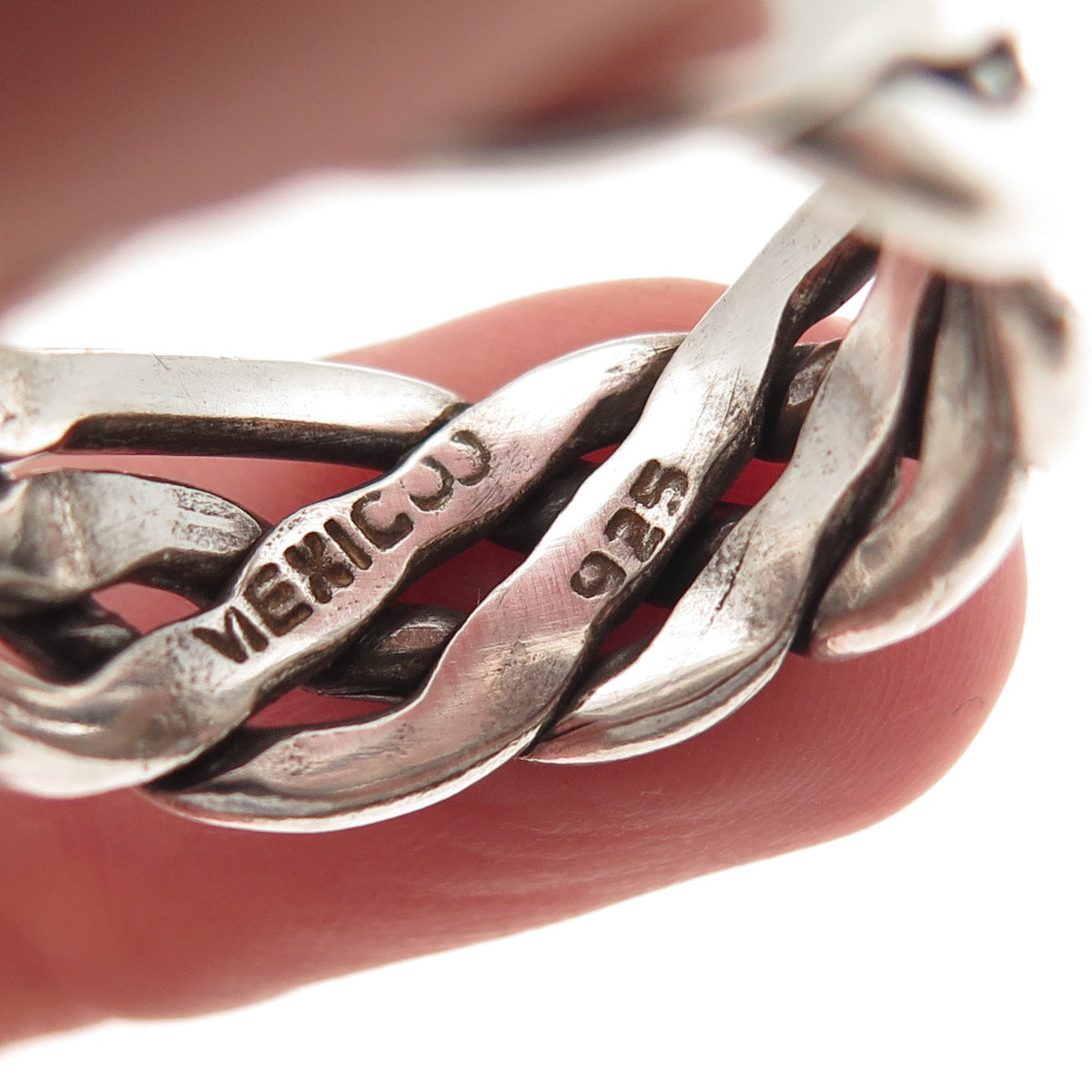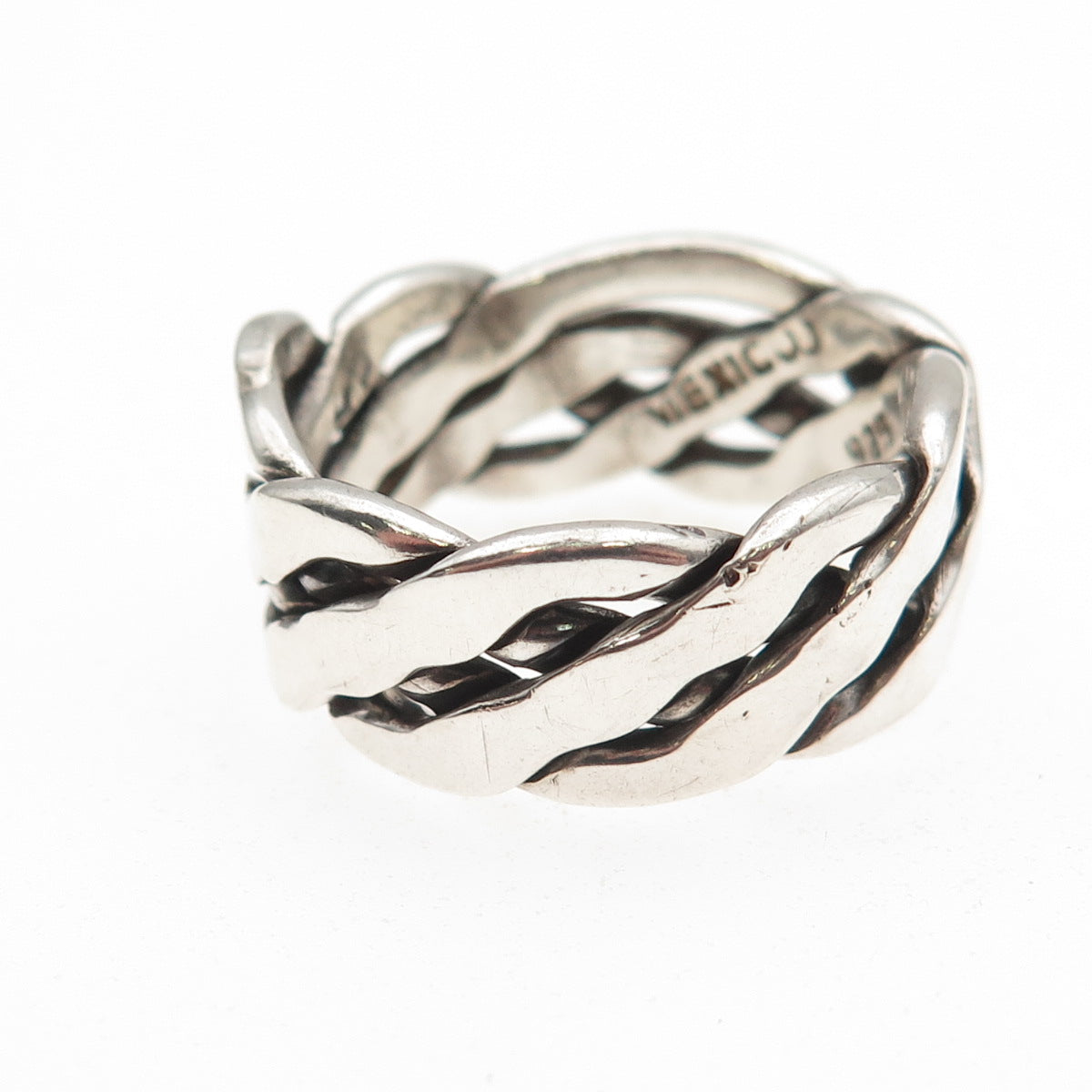 925 Sterling Silver Vintage Mexico Woven Oxidized Band Ring Size 11