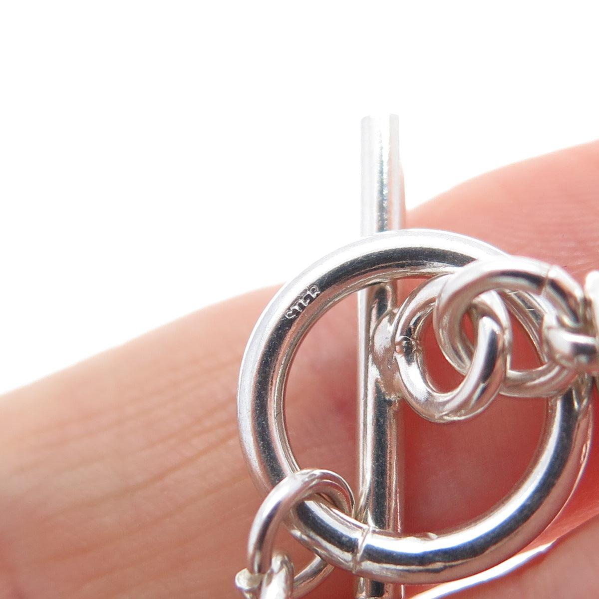 925 Sterling Silver Vintage Modernist Beaded Anchor Chain Necklace 16"