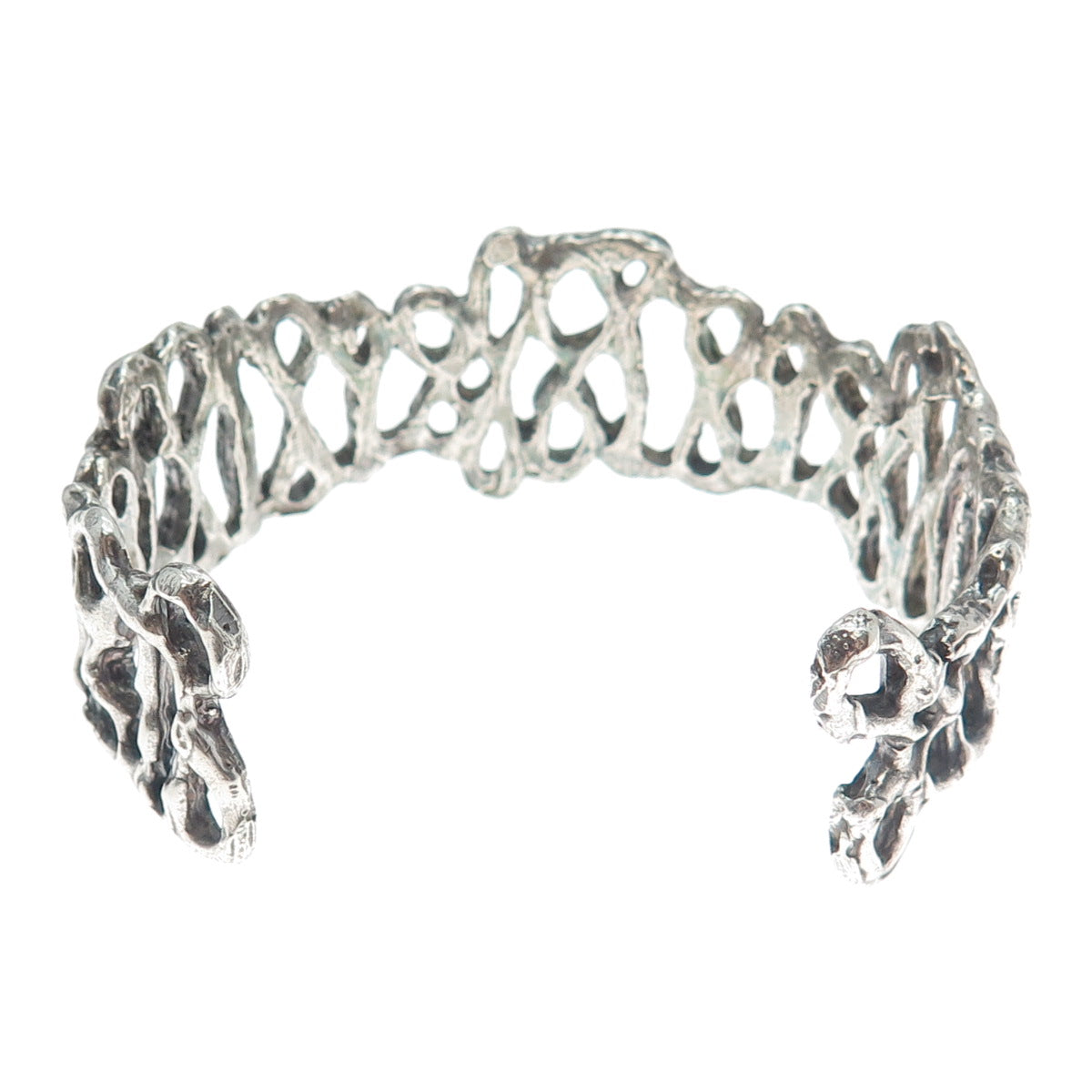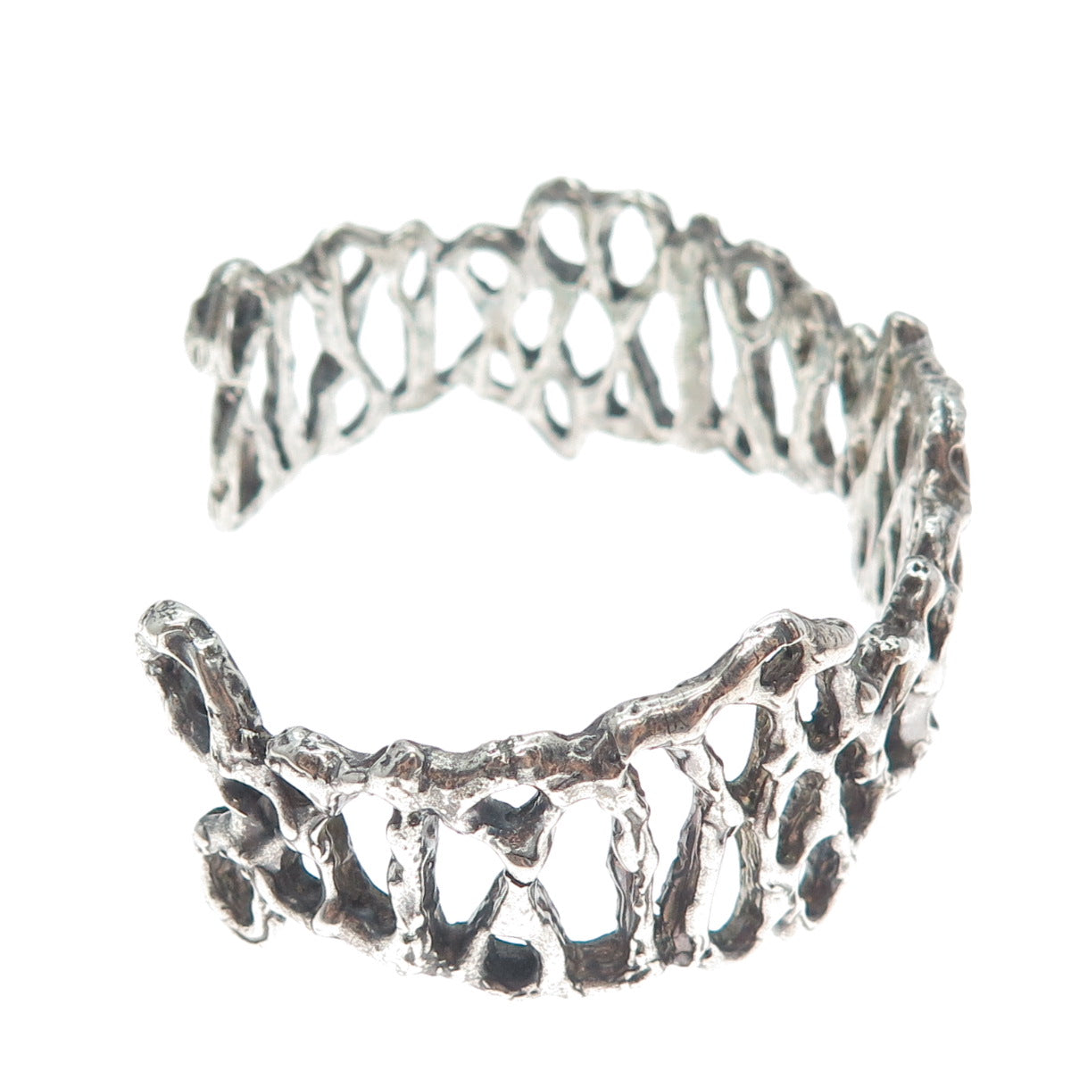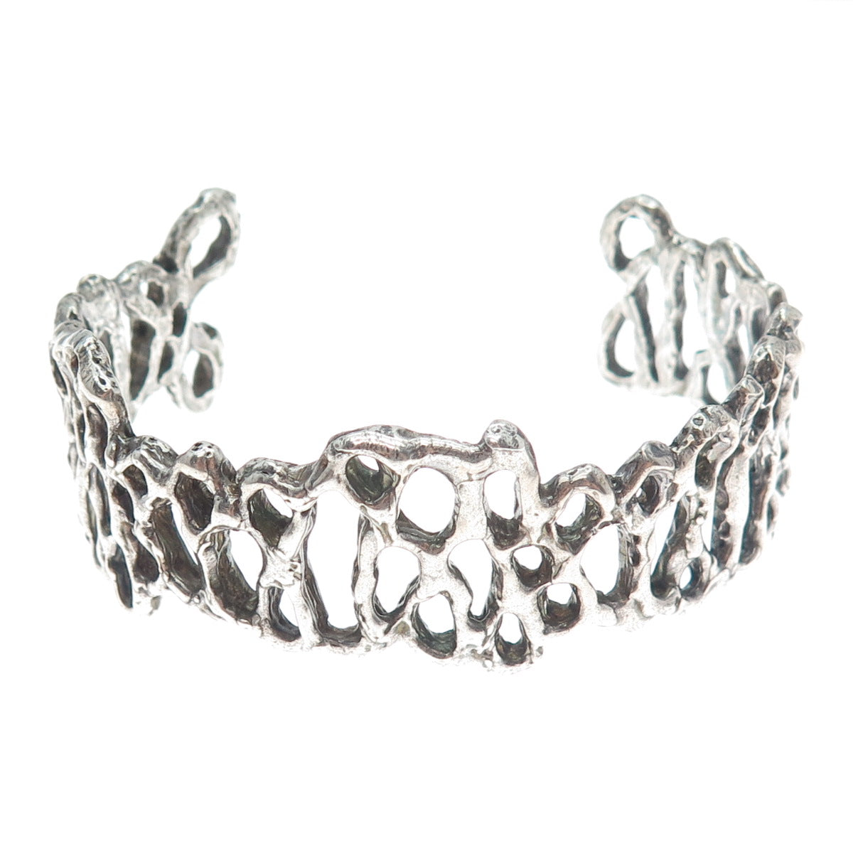 925 Sterling Silver Vintage Modernist Brutalist Adjustable Cuff Bracelet 7"