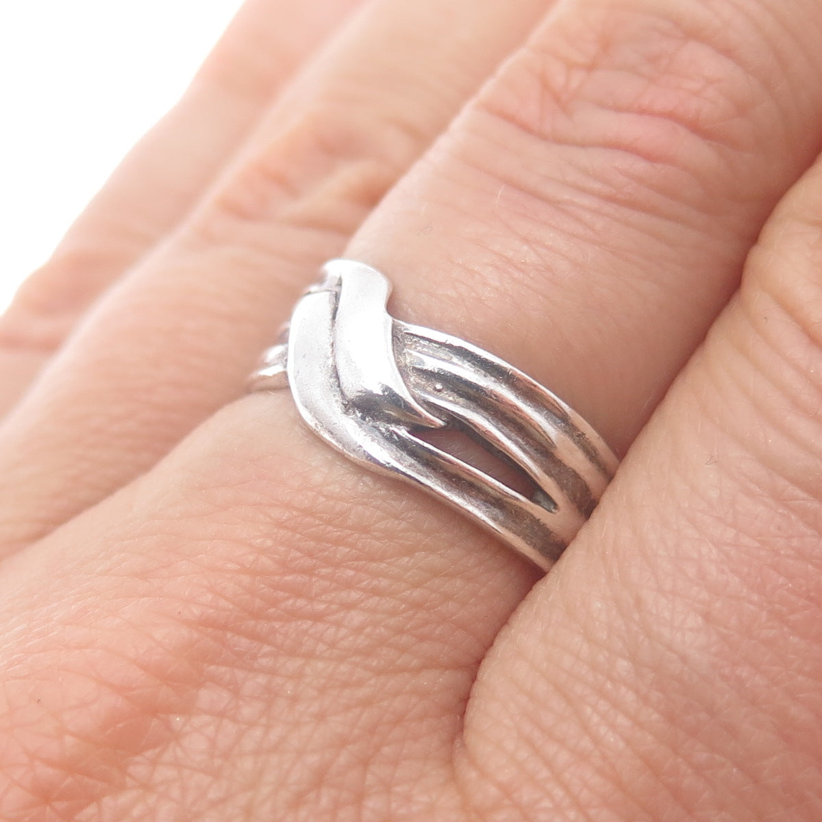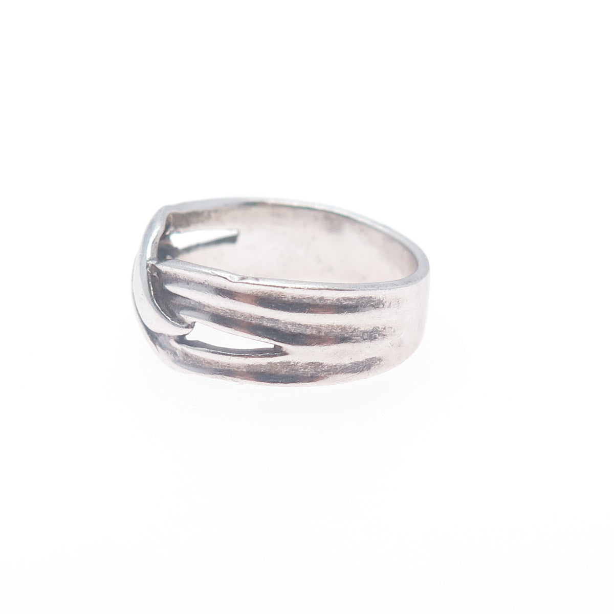 925 Sterling Silver Vintage Modernist Crisscross Oxidized Ring Size 7