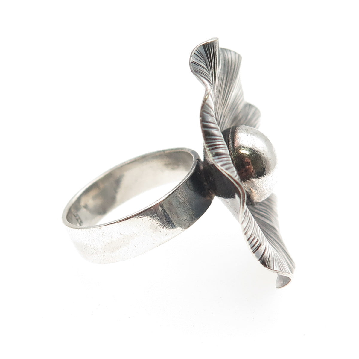 925 Sterling Silver Vintage Modernist Flower Statement Oxidized Ring Size 8.75