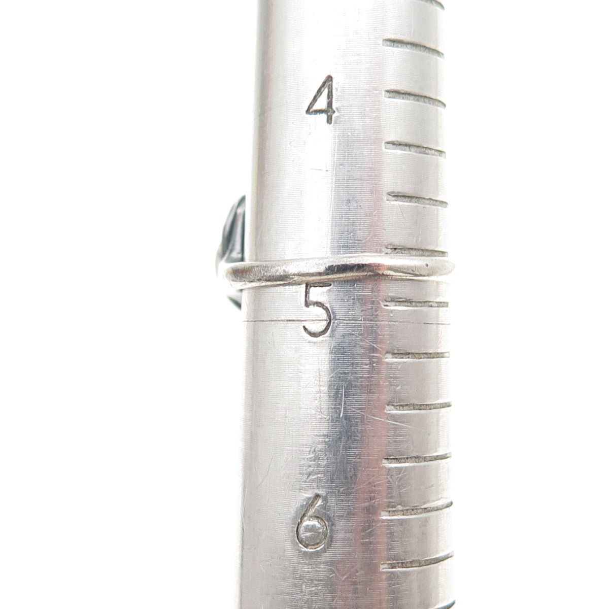 925 Sterling Silver Vintage Modernist Heart Oxidized Ring Size 4.75