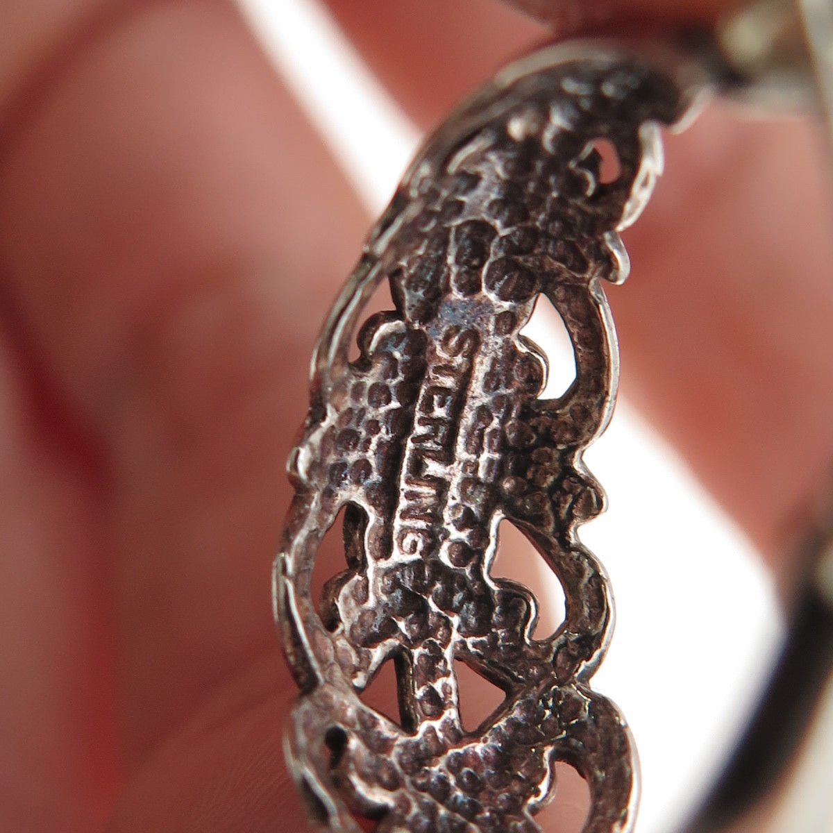 925 Sterling Silver Vintage Modernist Ornate Oxidized Hoop Earrings