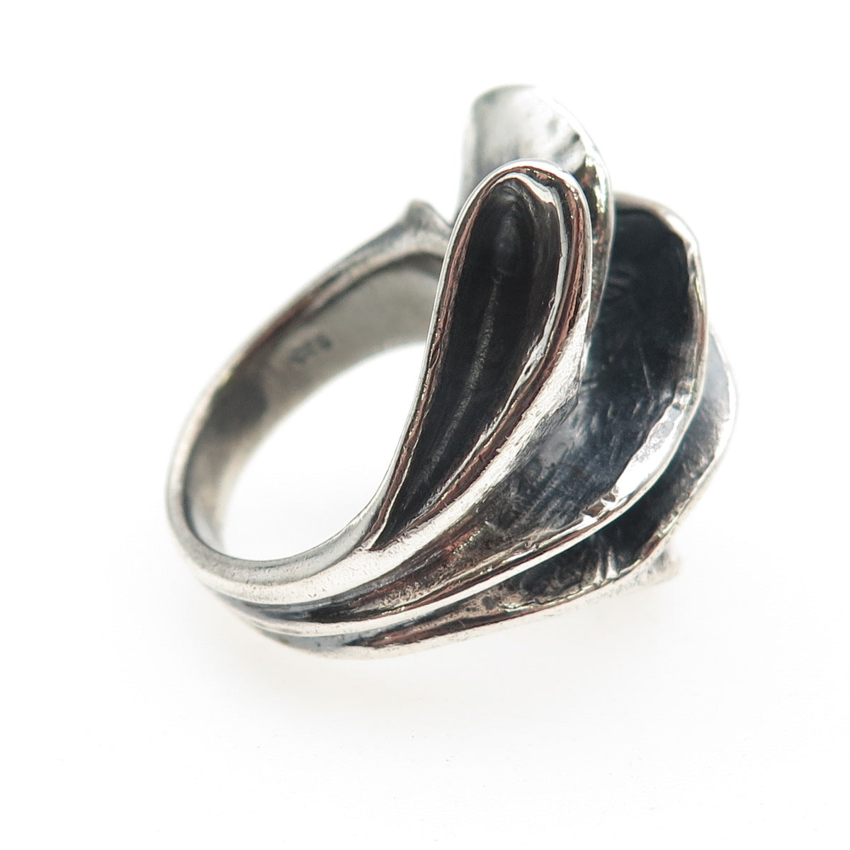 925 Sterling Silver Vintage Modernist Oxidized Statement Ring Size 7