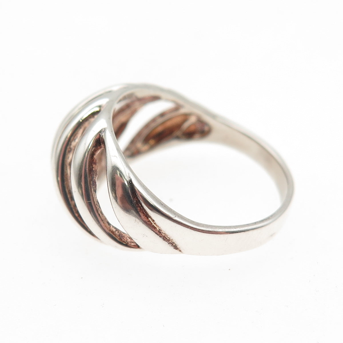 925 Sterling Silver Vintage Modernist Ribbed Dome Ring Size 6