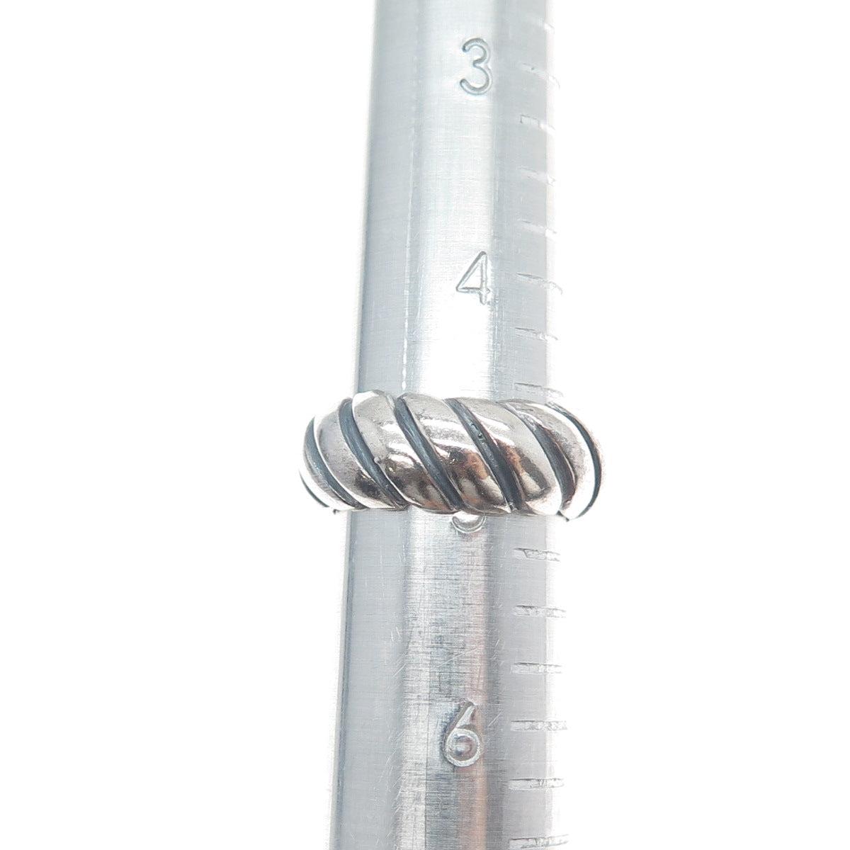 925 Sterling Silver Vintage Modernist Ribbed Oxidized Band Ring Size 5