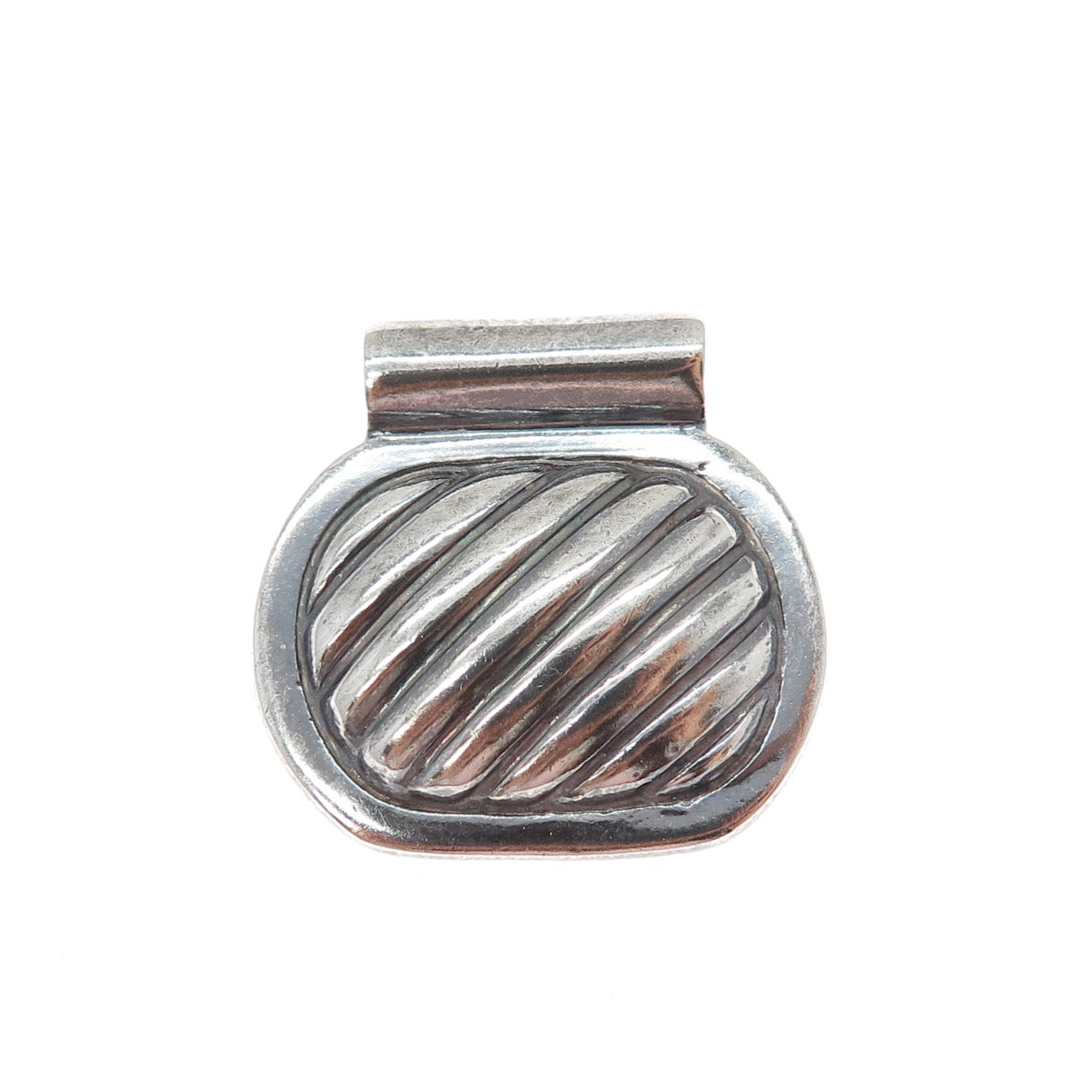 925 Sterling Silver Vintage Modernist Ribbed Oxidized Slide Charm Pendant