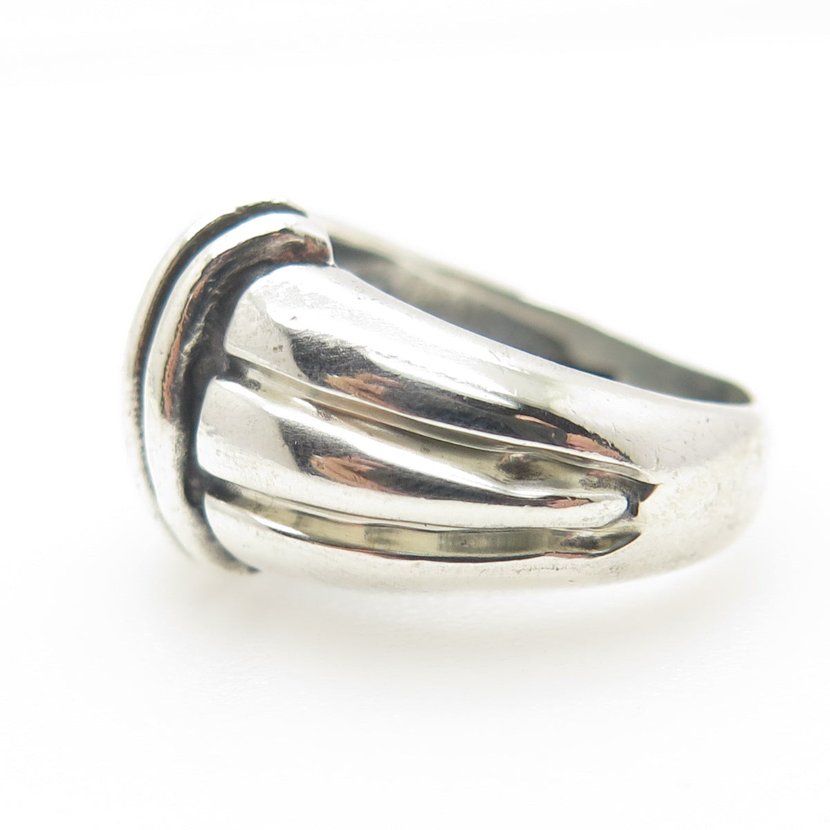 925 Sterling Silver Vintage Modernist Ribbed Ring Size 8.25