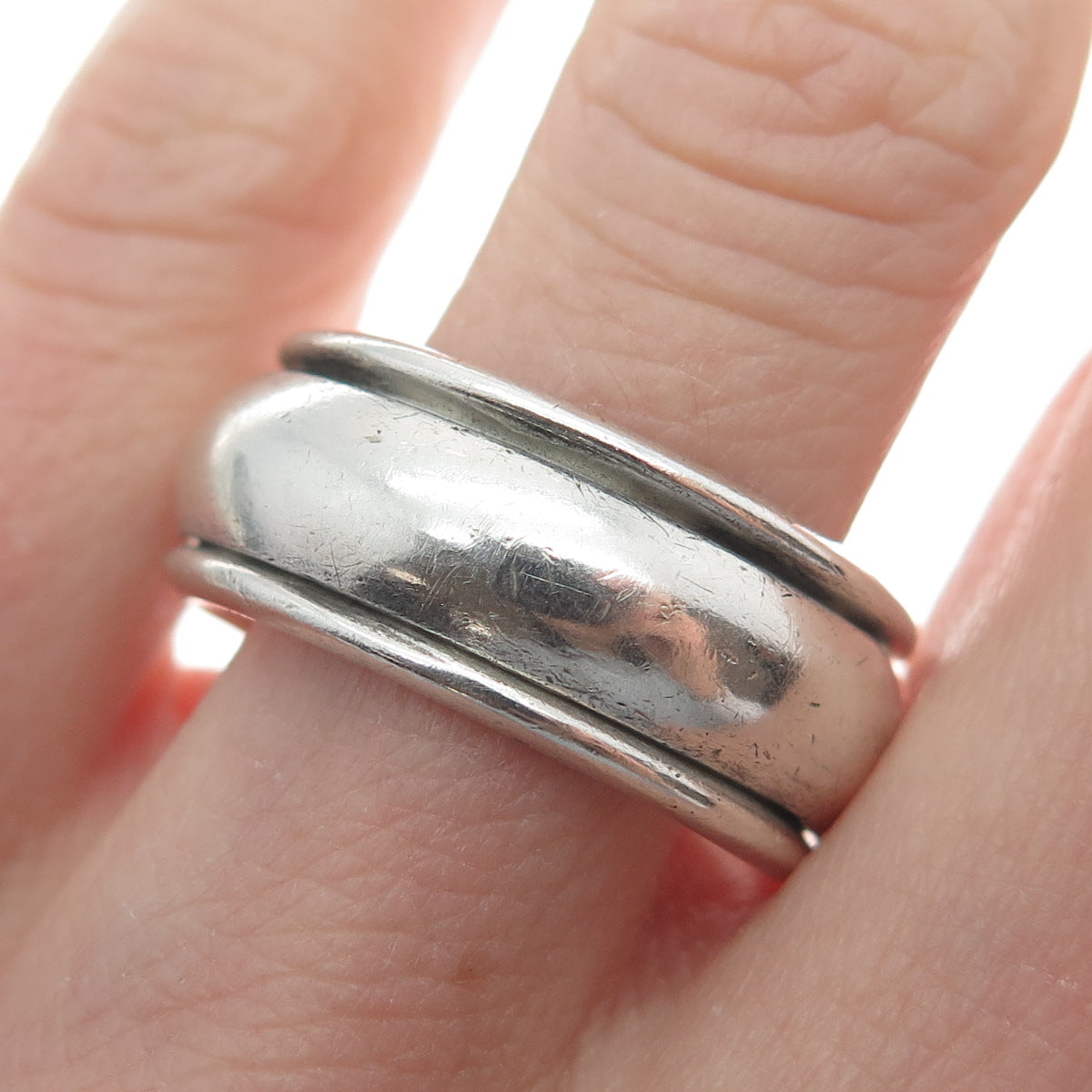925 Sterling Silver Vintage Modernist Rotating Band Ring Size 11