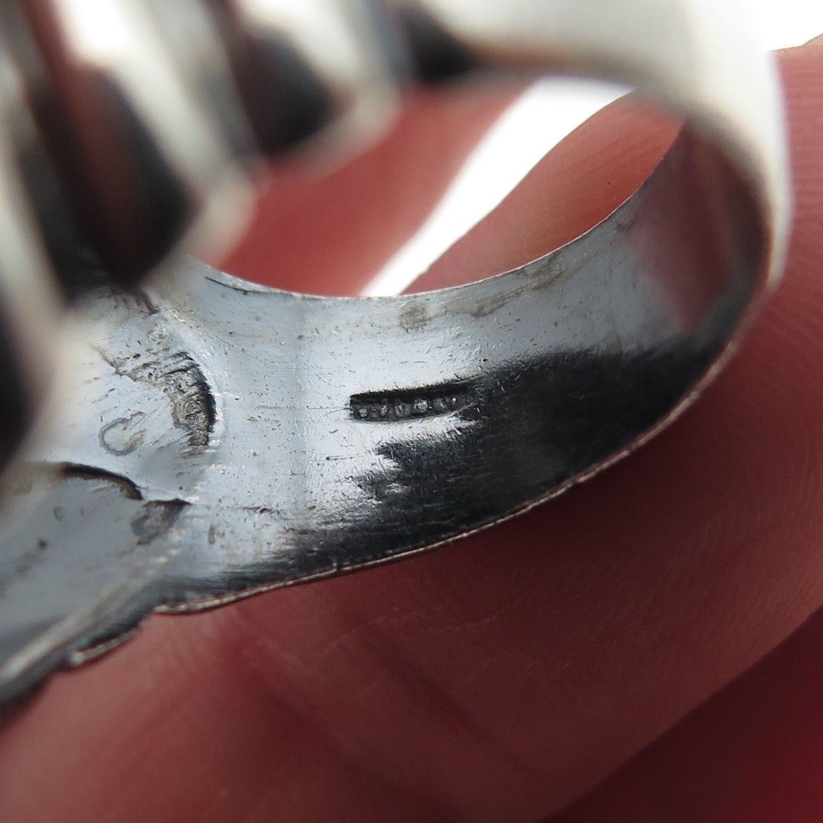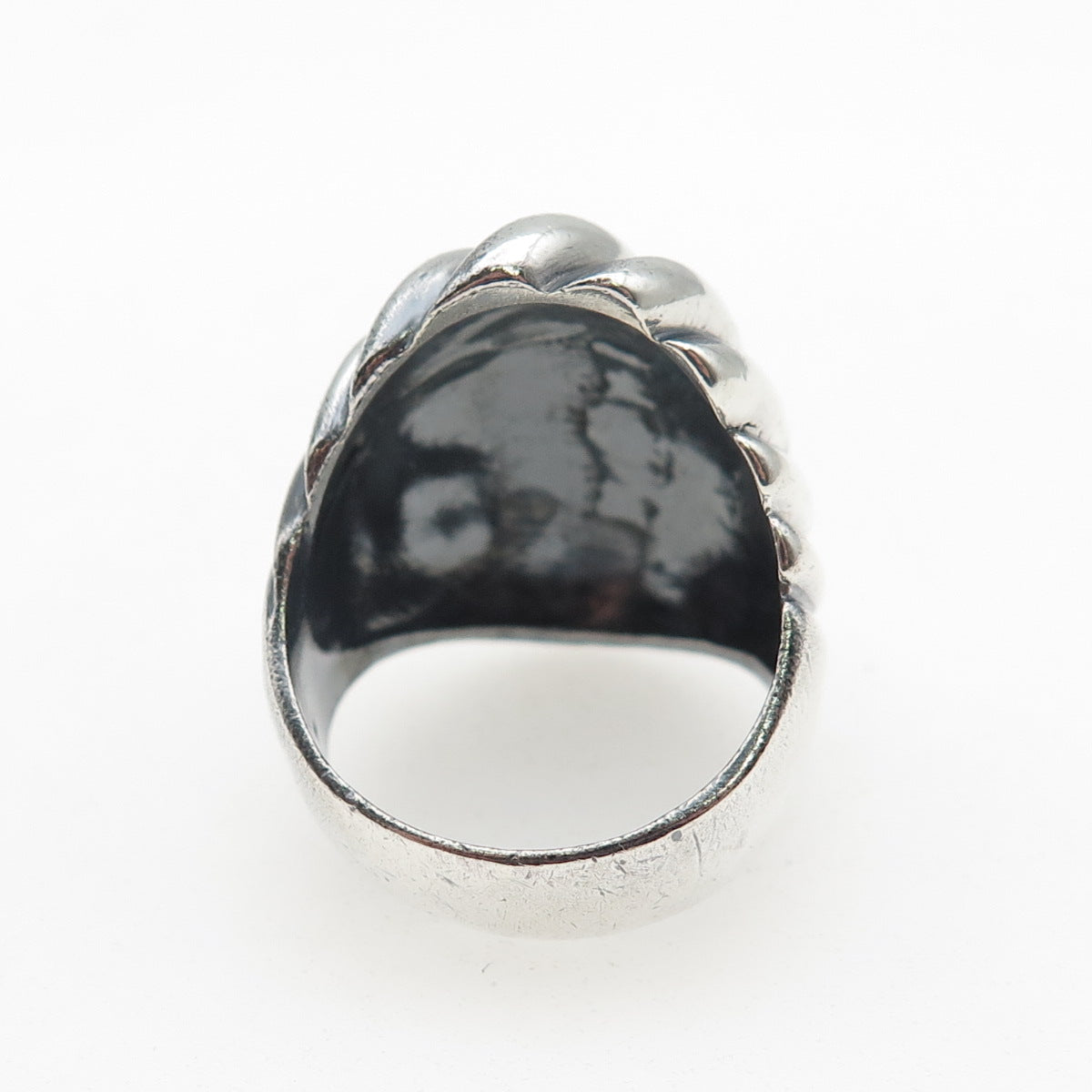 925 Sterling Silver Vintage Modernist Seashell Oxidized Statement Ring Size 9.5